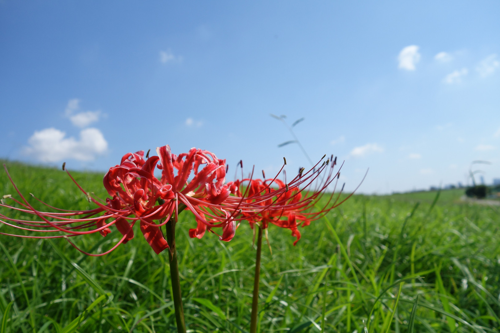 青い空に赤い曼珠沙華 のんびりと伸びやかなハレノイチニチ