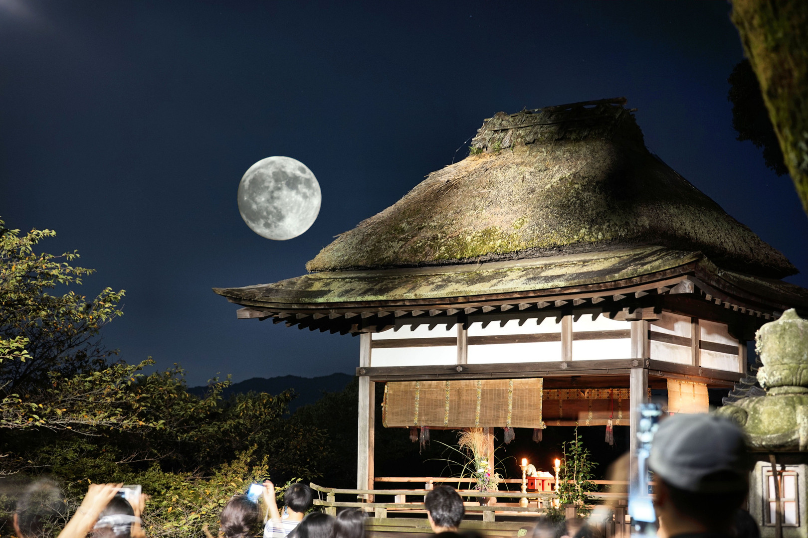 月見亭の観月の写真リベンジしてきました。 といっても、大きさ、明るさ、位置共にバランスが取れず、 400mmの月と70mmの月見亭の明合成のレタッチです。 左上の角が少し明るいのが本当の月明りです。
