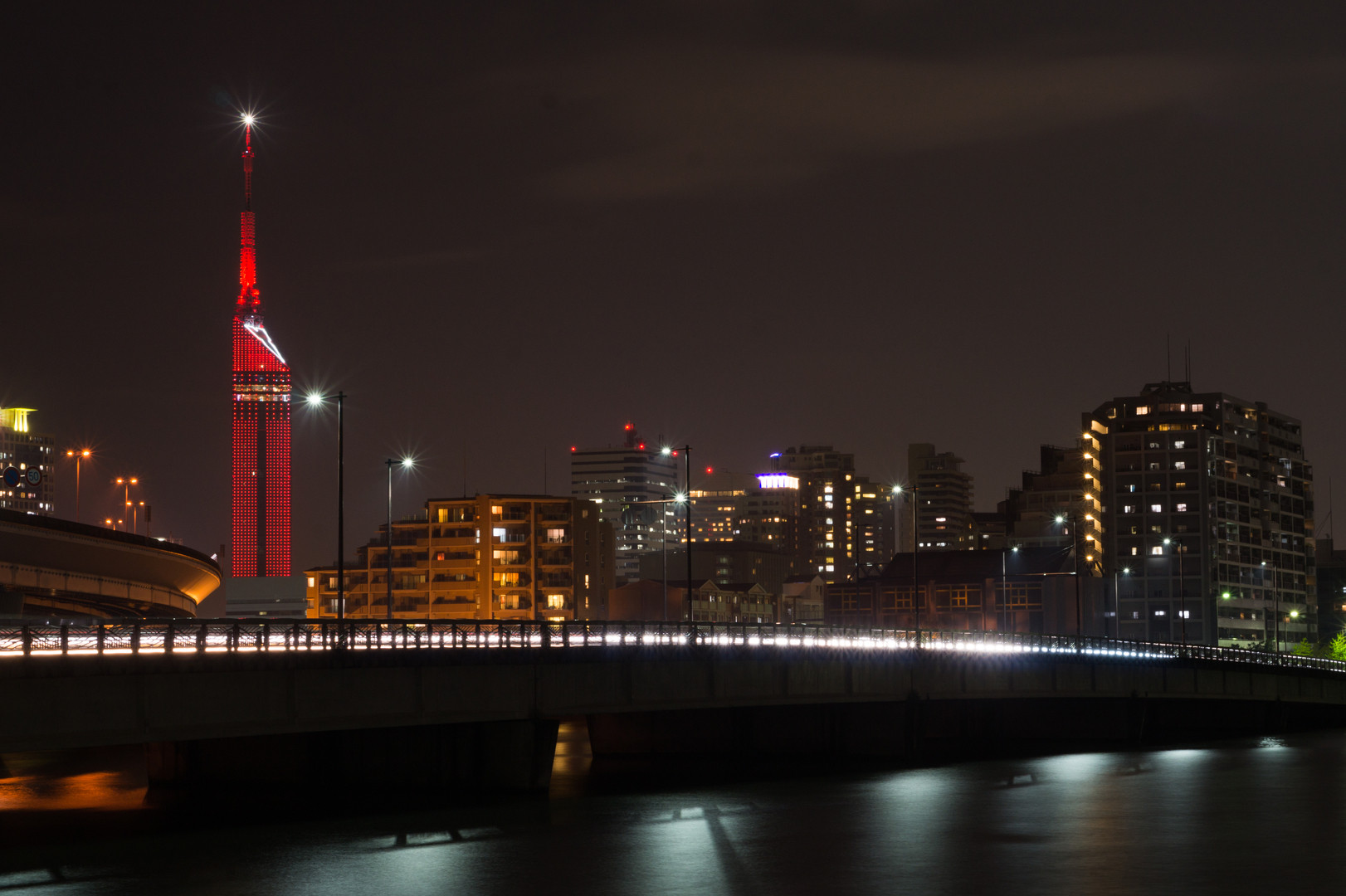 展望の日の前夜、福岡タワーが真っ赤にライトアップされました。