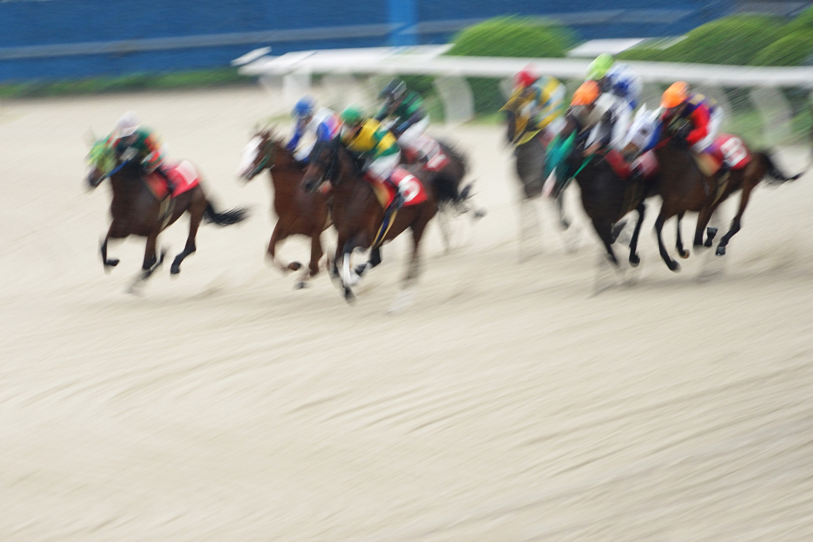 α体験会で撮りました。 トイぽい写真になりました。馬のくねくねした脚とジョッキーのカラフルなユニフォームのおかげかな。