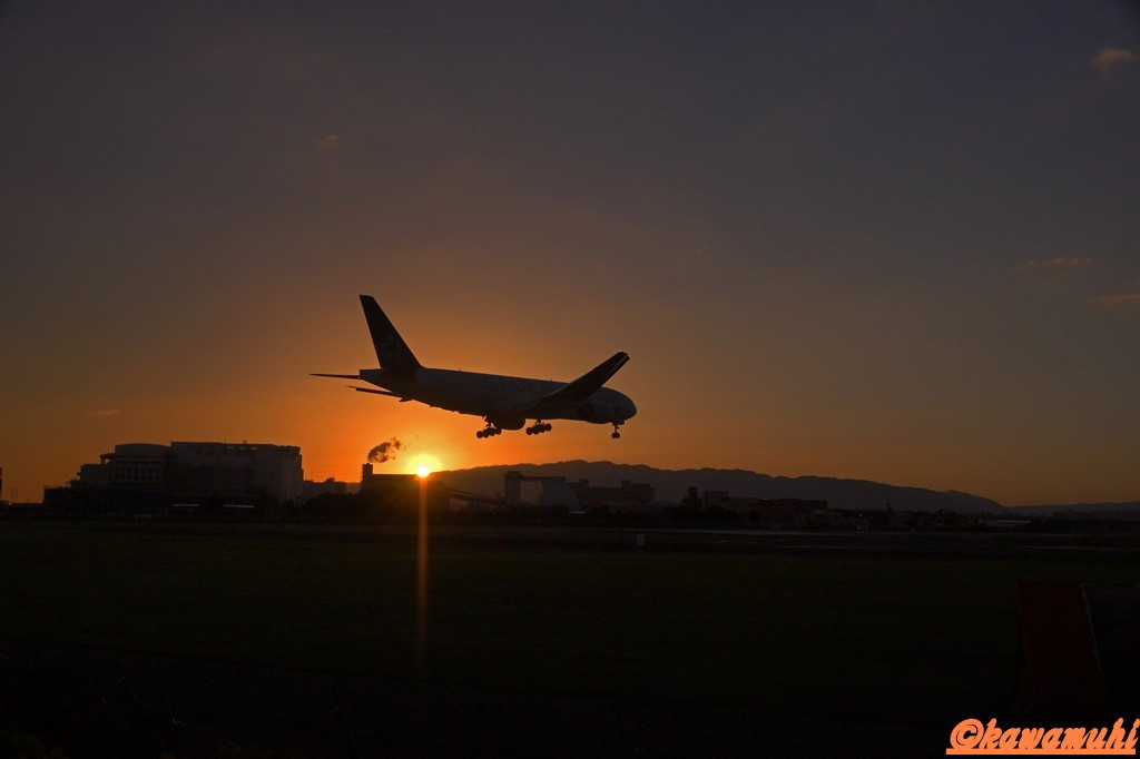 本日はきれいな夕陽に。雲がないのが残念ですが、ゆっくりと着陸する飛行機を撮影できました!(*´▽`*)