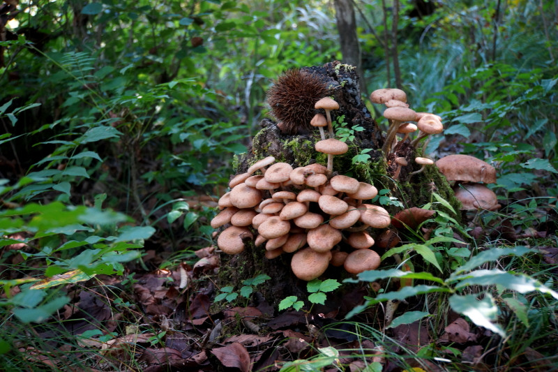 栗拾いの林の中で見事なキノコ、みつけました。 種類はわかりません。