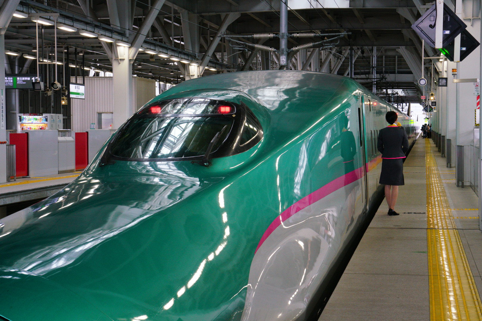 始発駅の新青森でお客様を出迎えるキャビンアテンダントです。