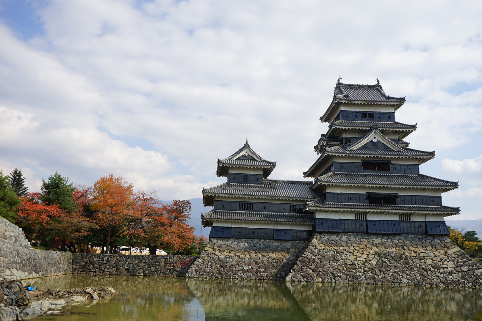去年の秋の松本城です。 烏城の黒と紅葉がとても綺麗です。