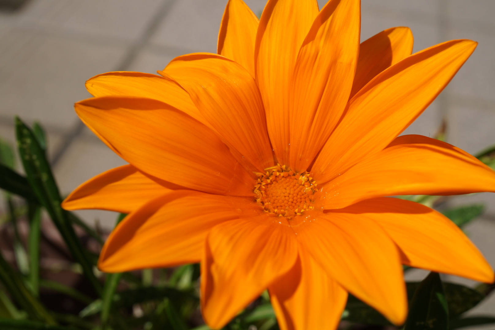 ばあちゃんちの花です。 晴れていたのでオレンジが綺麗に見えます。 水やりをやった後なのか、水が溜まってます。