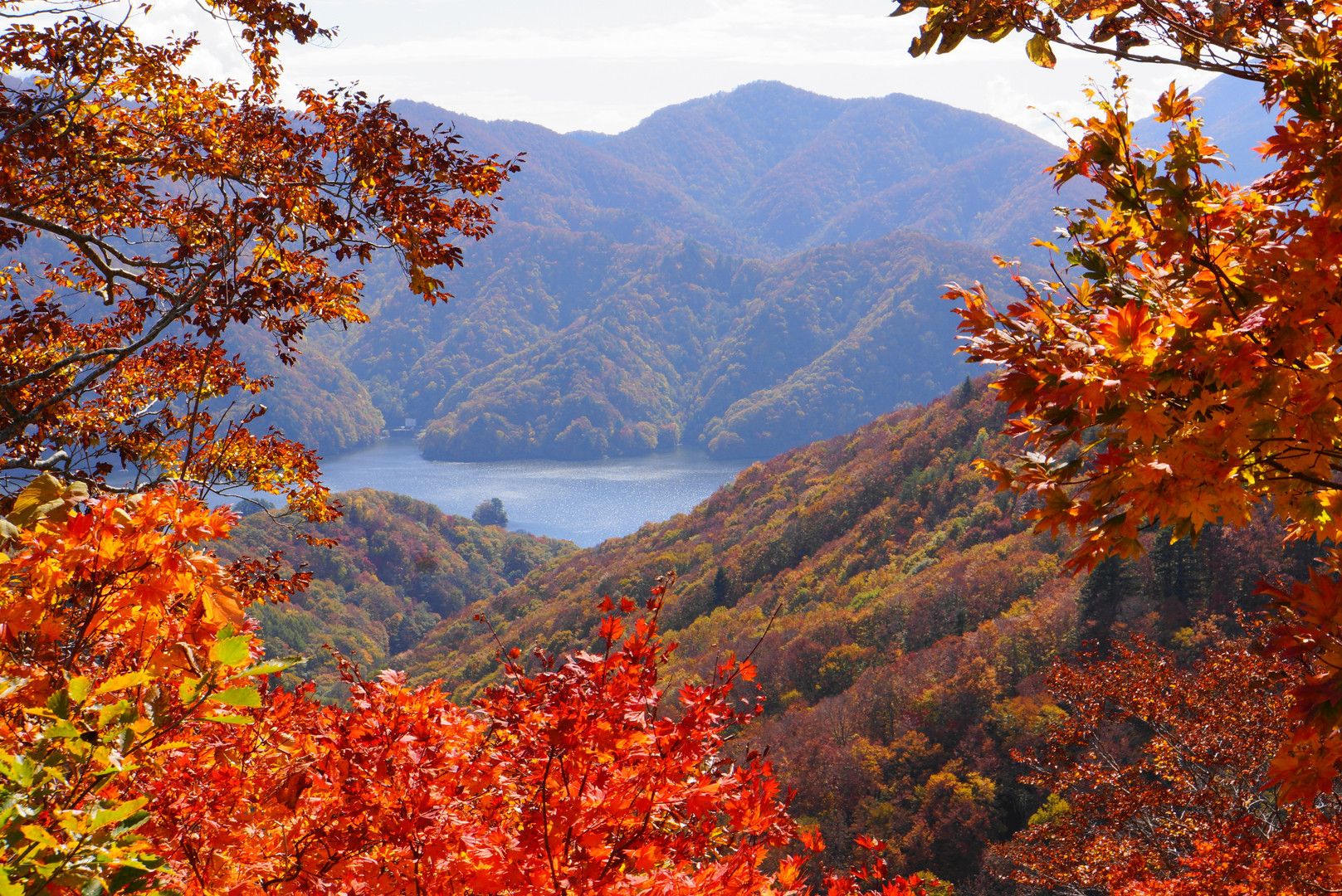 磐梯吾妻レークラインから望む秋元湖 紅葉が見事!
