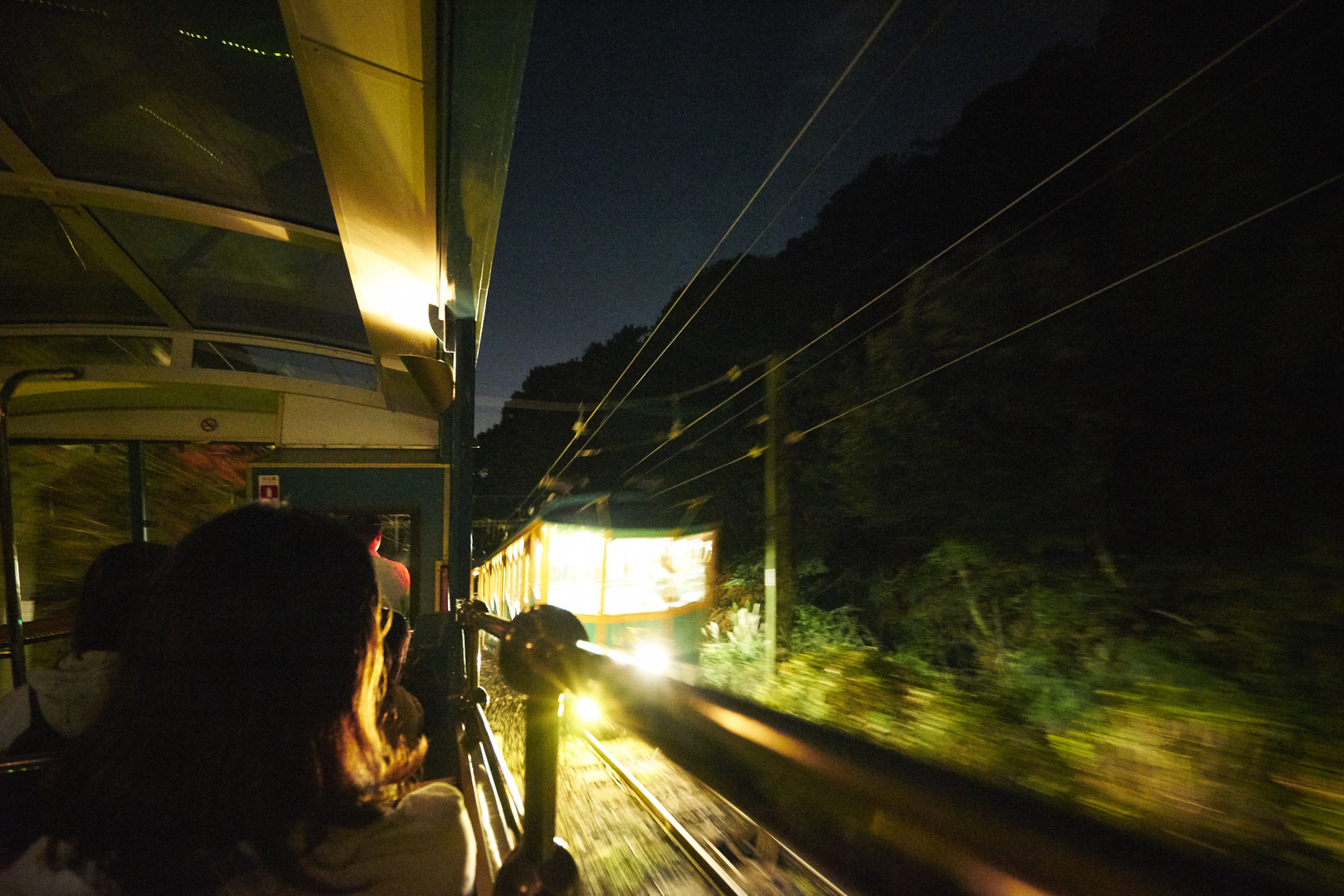 六甲ケーブルカーのスレ違いポイントです。 夜の撮影は難しい… SEL1635Z