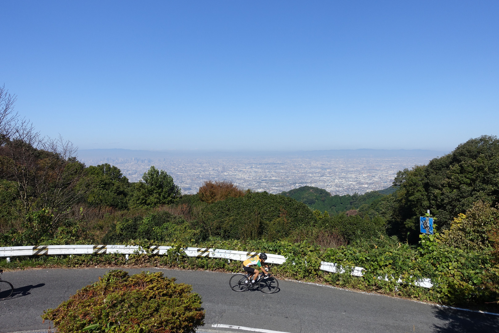 十三峠から大阪を撮影いたしました。秋晴れでサイクリングやハイキングの方も多かったです。