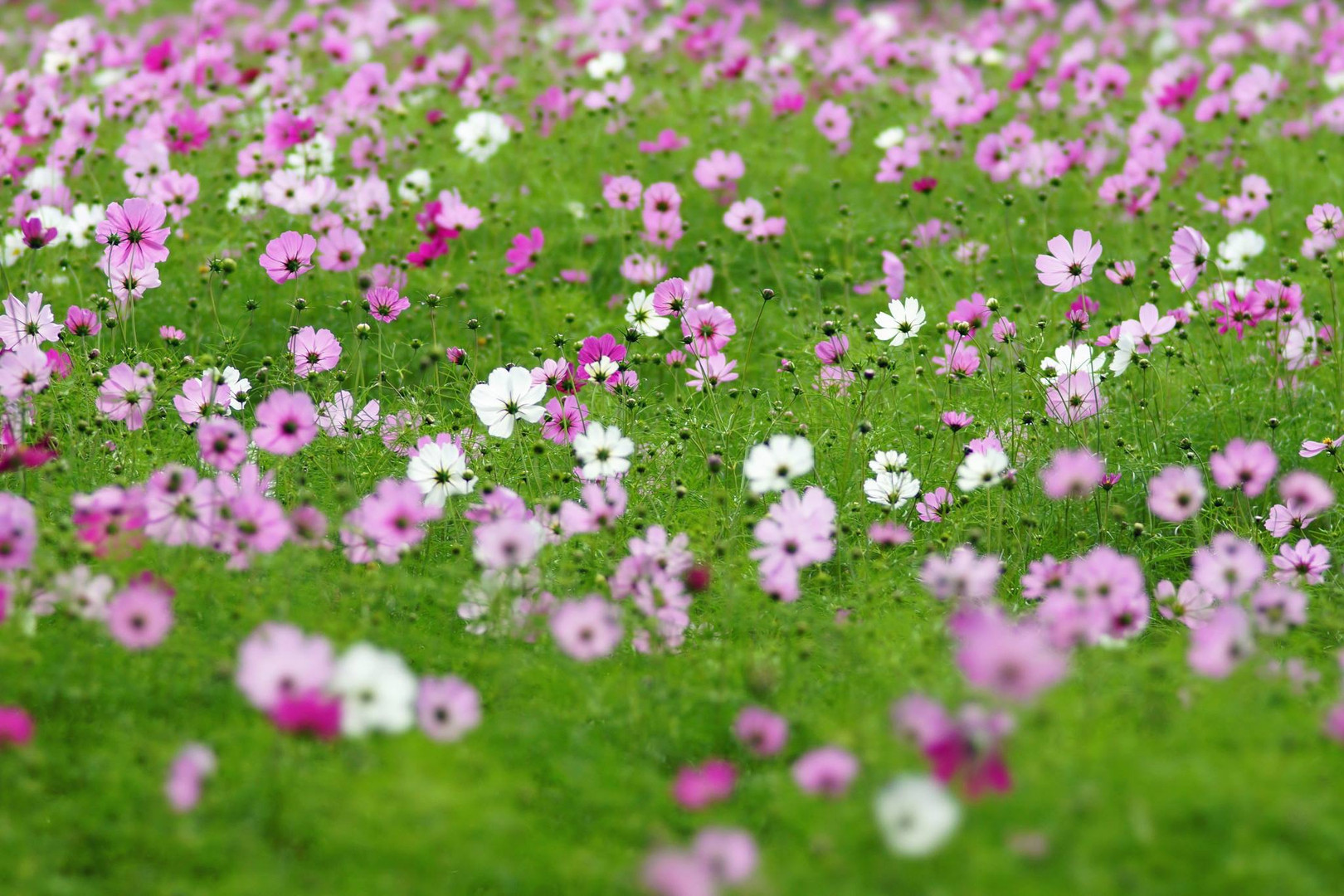 今年産まれたばかりのコスモス畑 若いコスモス達と同じ方向を向いて、力をもらいました(^^)