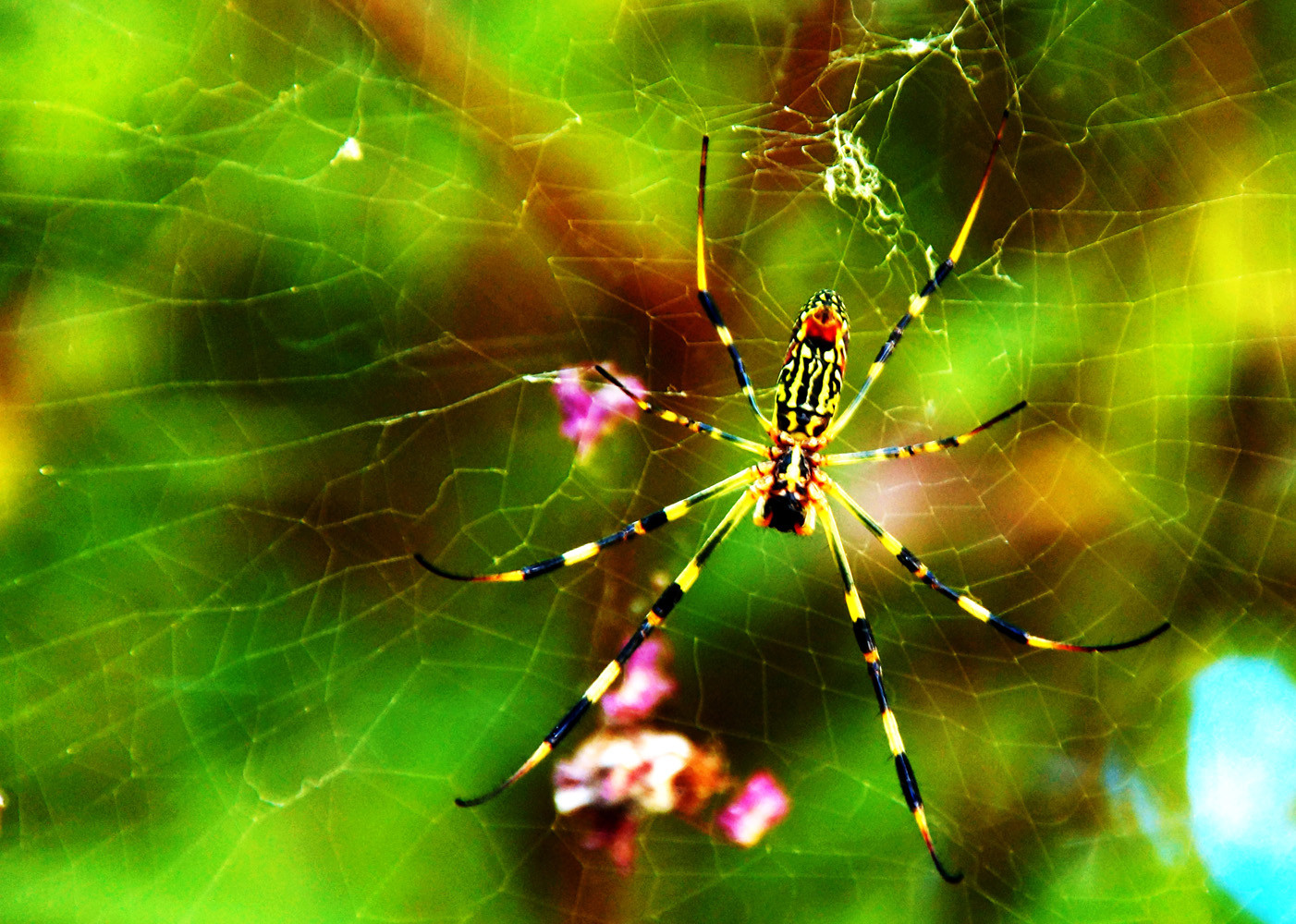 我が家の庭に蜘蛛の巣が張り巡らされた。