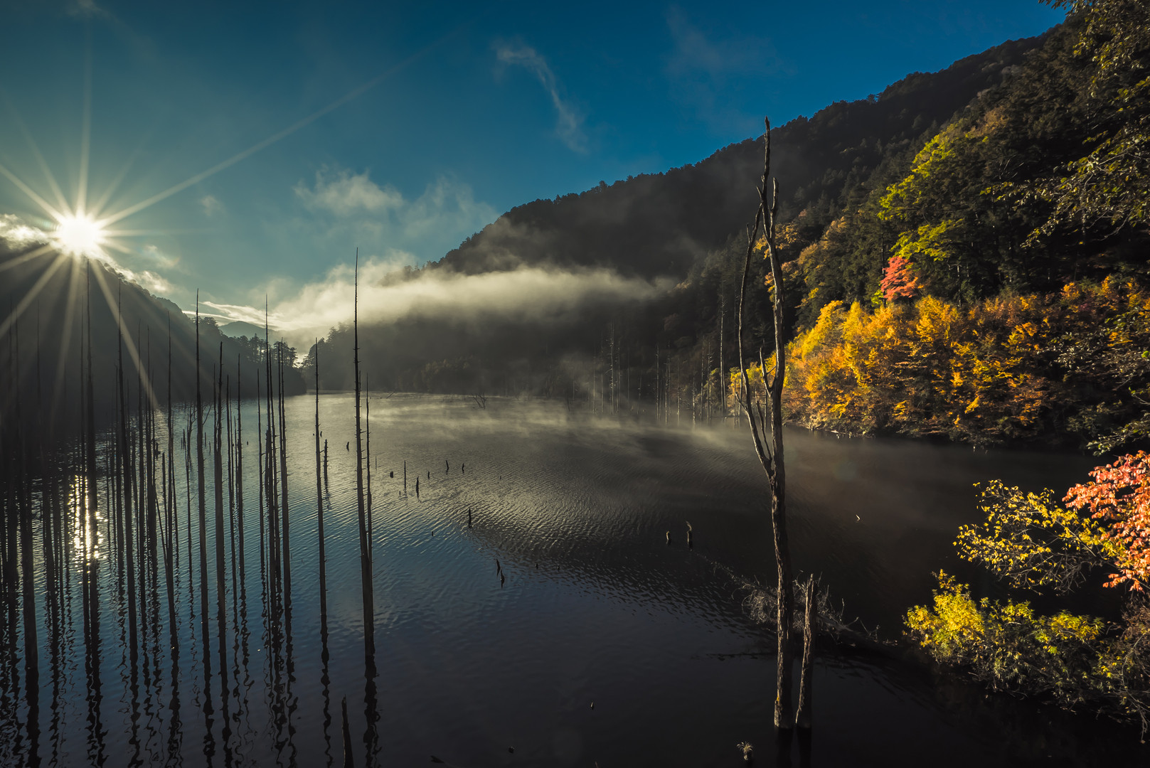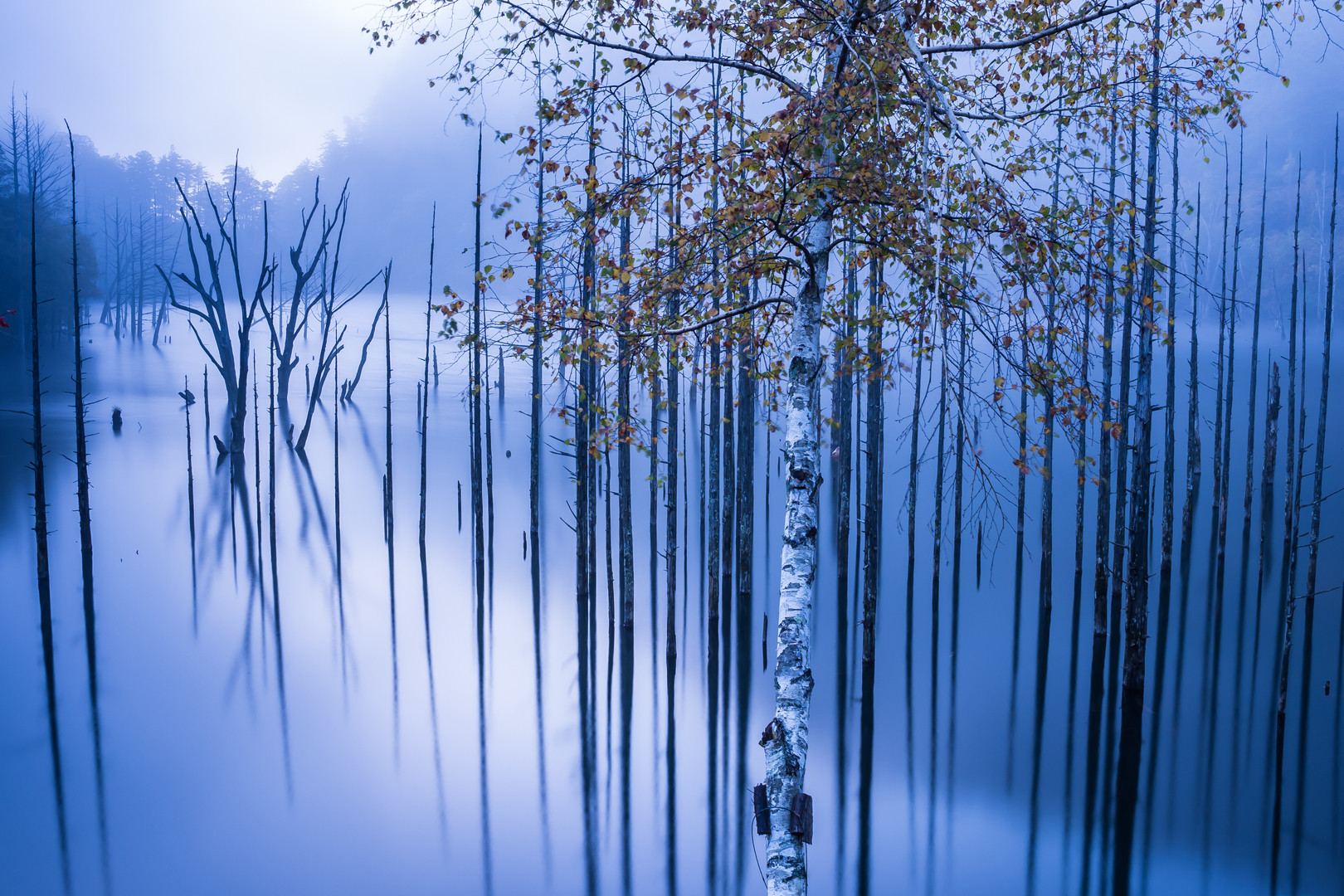 夜明けの自然湖