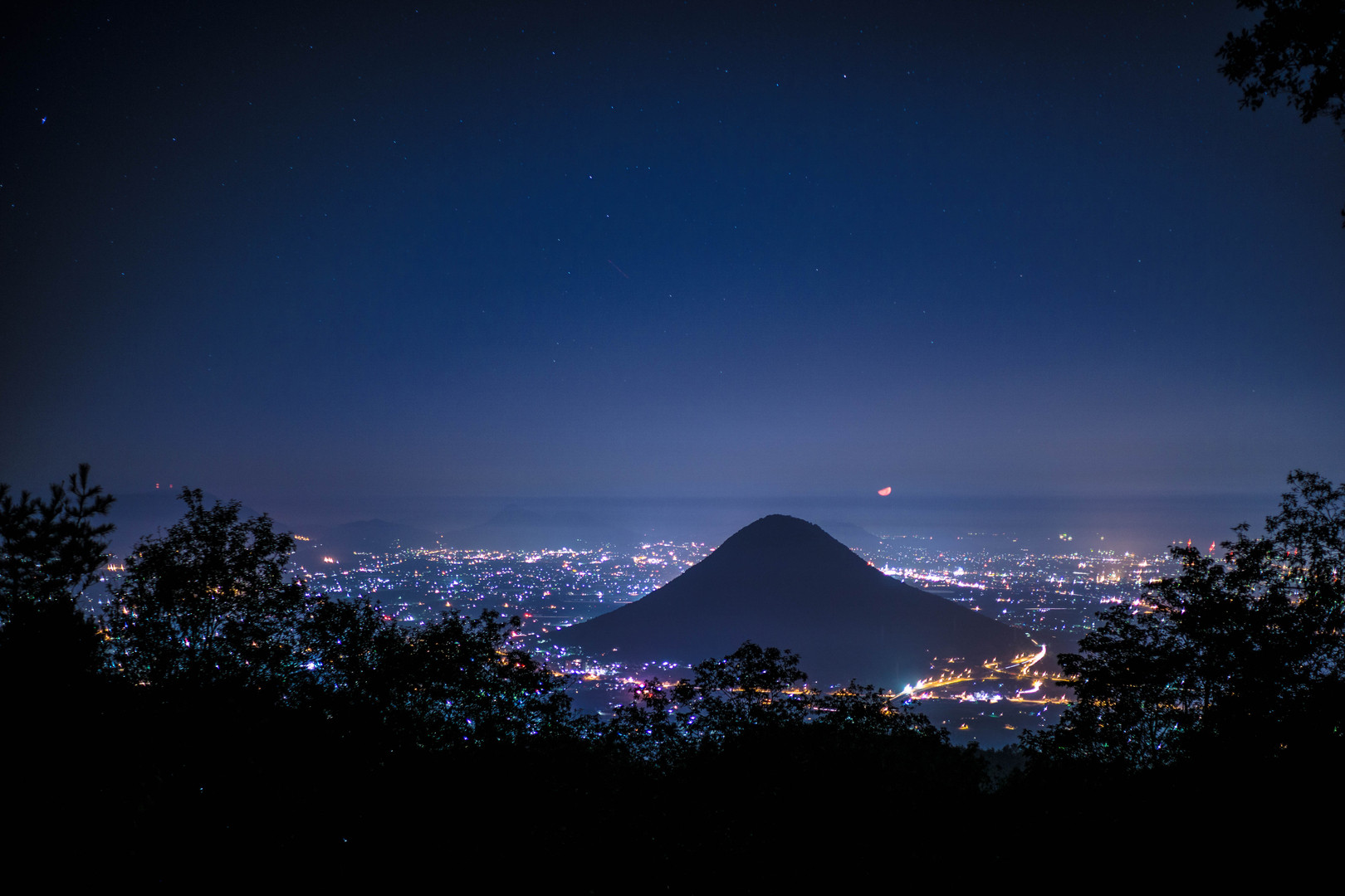 お月様が赤く染まって見えました。 城山展望台からの眺めはぐるり色々見れていい感じです。