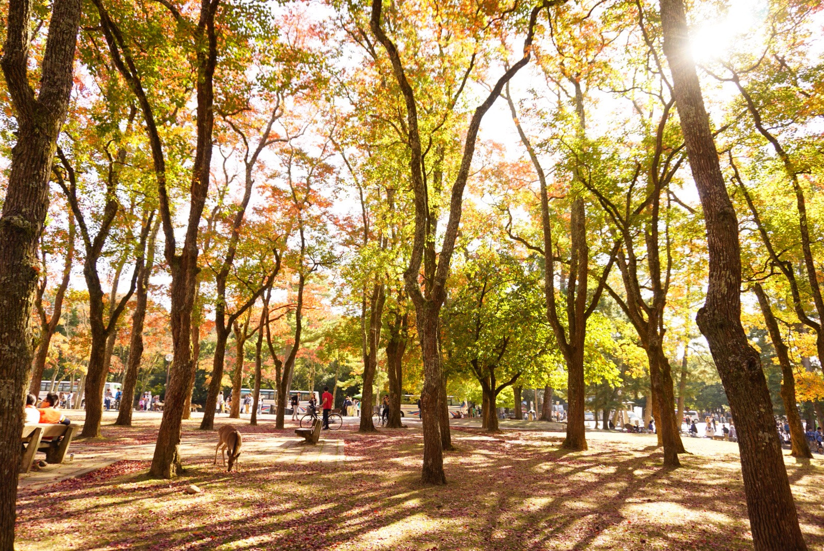 赤色に 染まってきた 奈良公園 です 。 秋が 終われば 今年も そろそろ 終わるなあ …