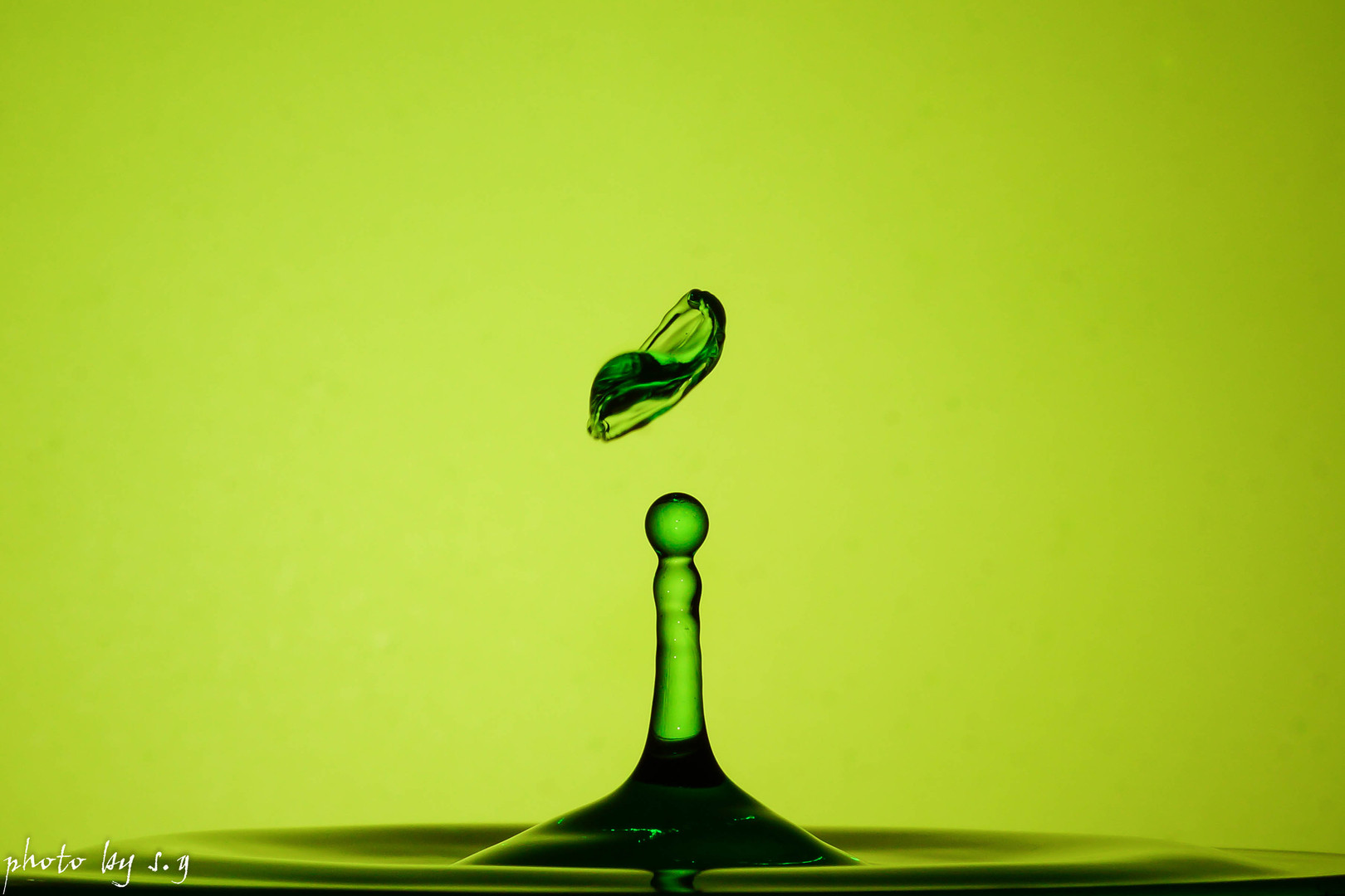 人の目には見えないほんの一瞬の出来事ですが、こんな姿を撮影することも、水滴写真の醍醐味です。