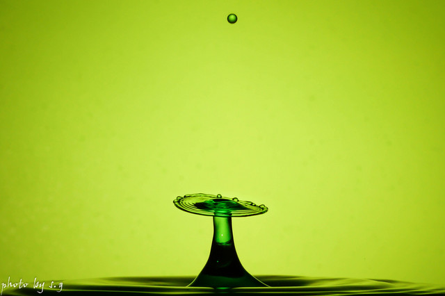水滴を水に落とすと、反動で水柱が立ちます。