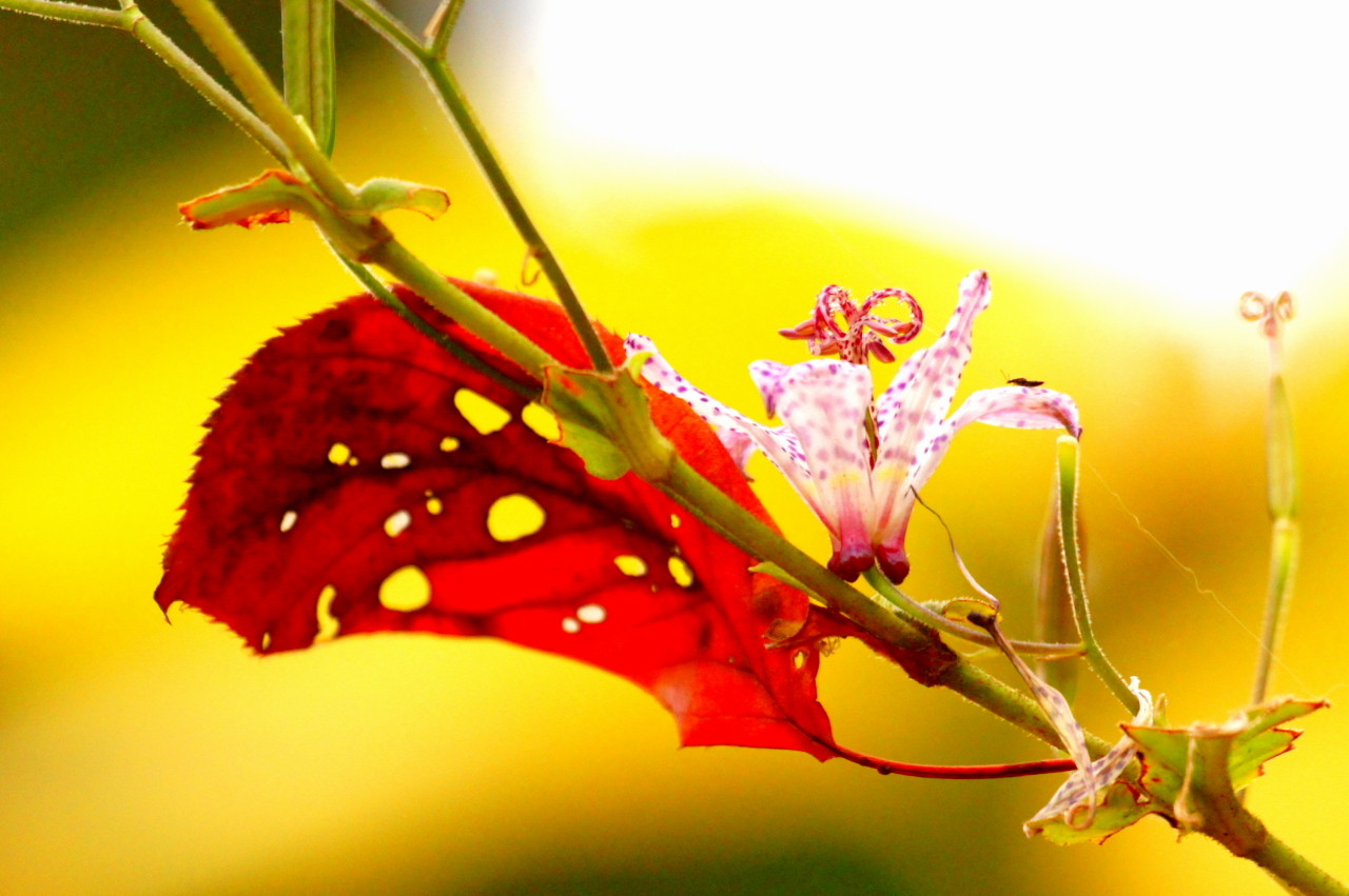 夏の花と枯葉のコラボ