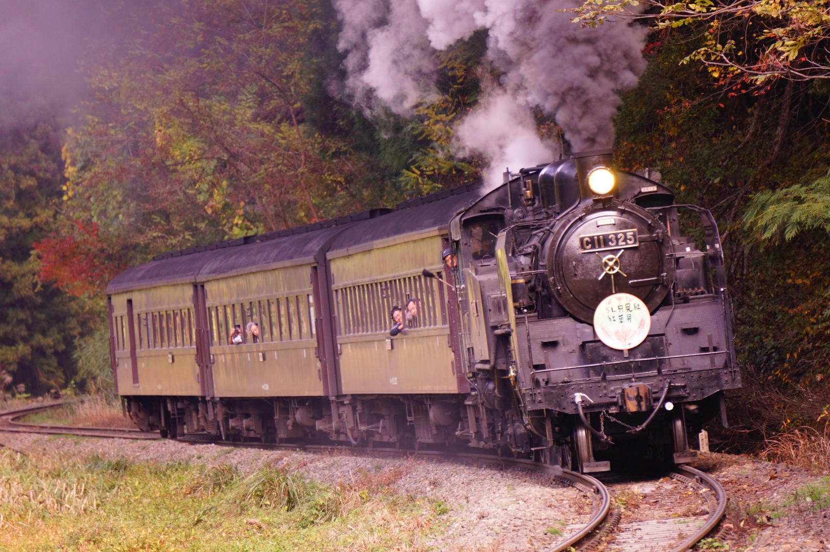 急勾配のS字カーブを喘ぎながら登ってくる。SLはまさに生き物!少し露出オーバーですが・・・
