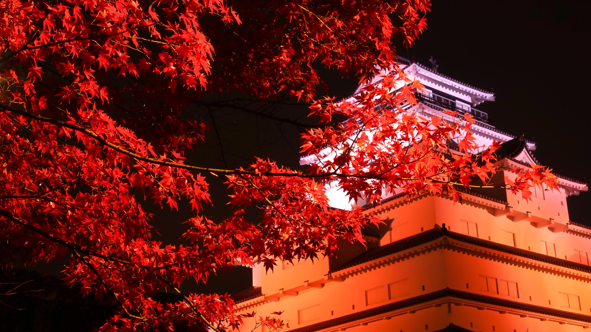 鶴ヶ城で紅葉のライトアップをしてると聞いて行って来ました。 夜8時過ぎでしたが、田舎なのでほとんど人は居ず 静寂の中紅葉とお城を独り占めでした。