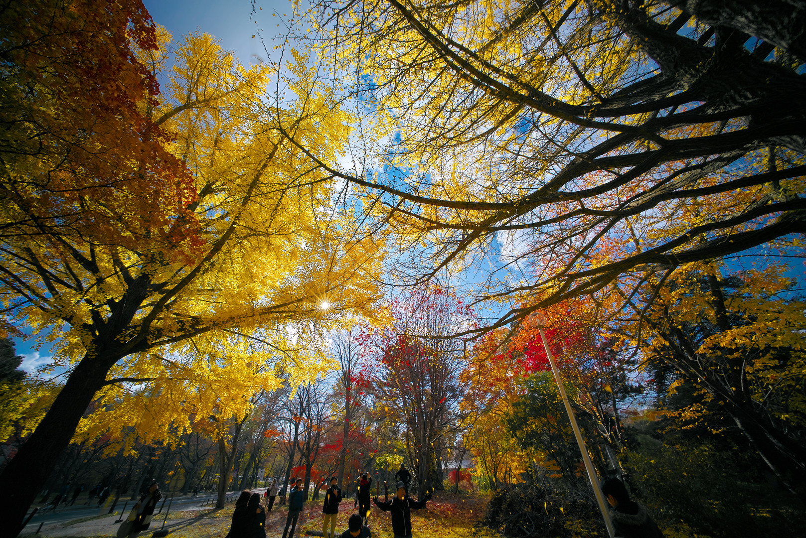 2015/11/3 北海道大学にて α7S+ULTRA WIDE HELIAR 12mm F5.6 Aspherical II 秋風で銀杏の葉が舞い落ちてきた。 わ~ッという歓声が沸き起こり、あたりは黄色い喜びで満たされた。(^^ゞ