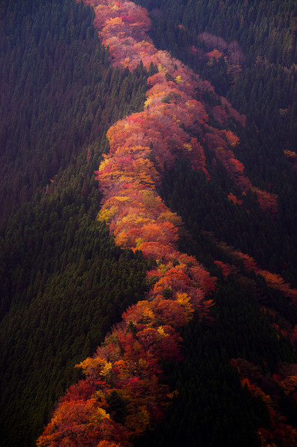 以前投稿した山桜の写真と同じ場所で今度は紅葉の撮影をしてみました。