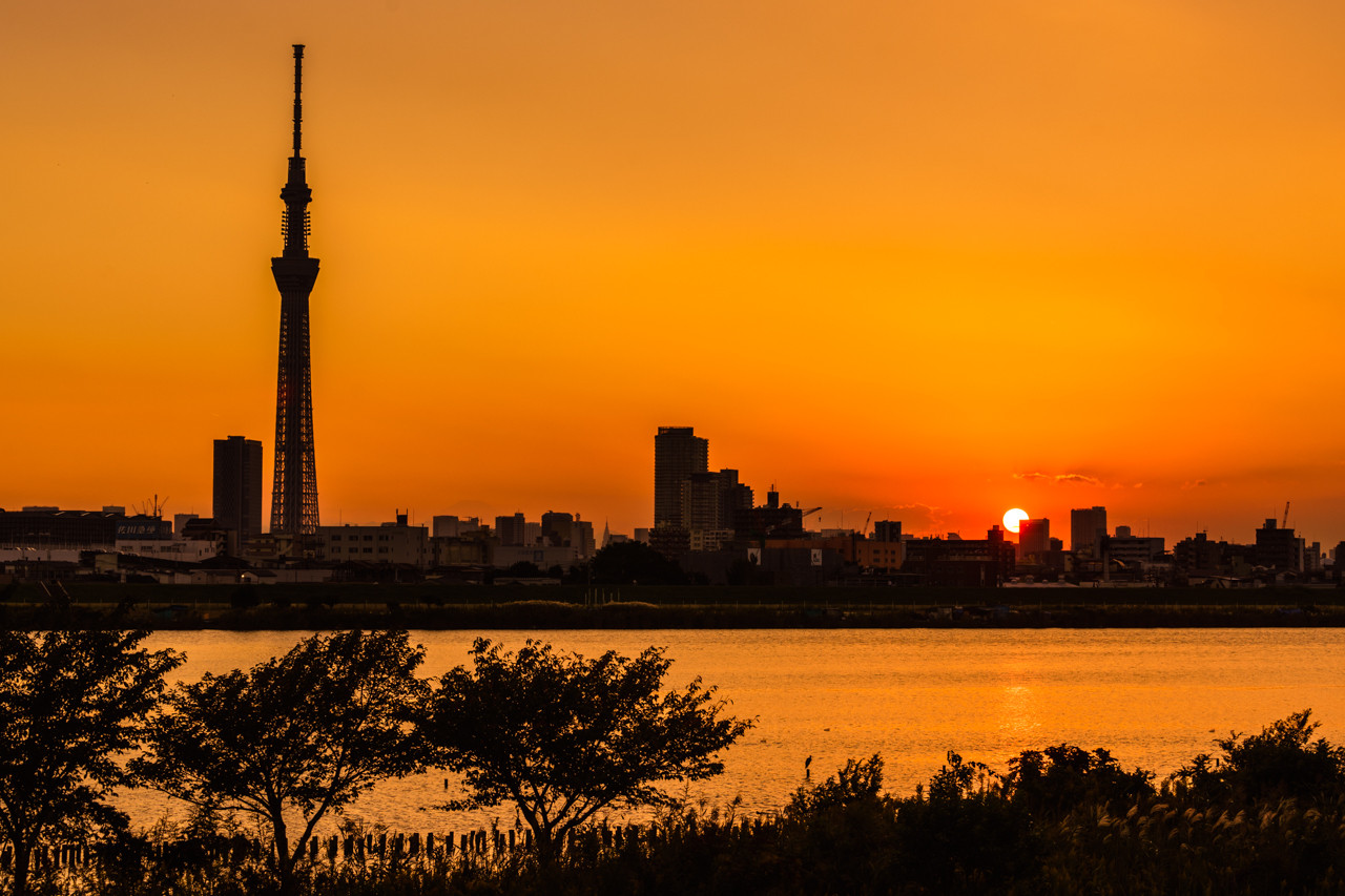 製品情報>My Sony>αcafe>夕暮れに染まる水面とスカイツリー(moyuさん)