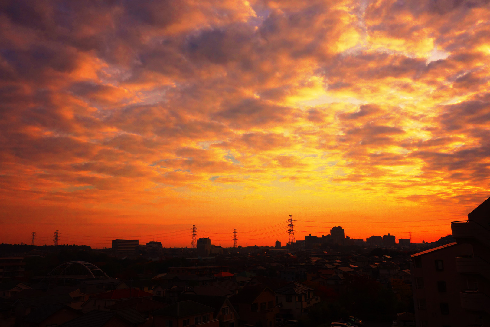 朝焼けに送電線のシルエットが素敵でした。