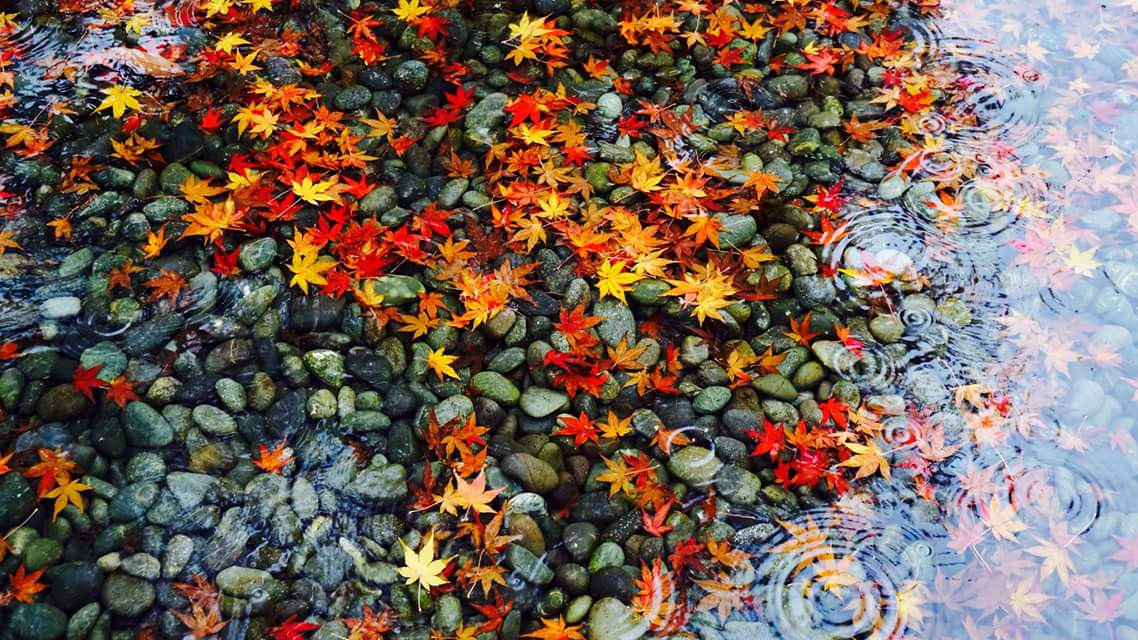 紅葉を撮影しようと神社に行って撮った一枚。残念ながら雨が降ってましたが、そのおかけで水面に落ちる水滴と紅葉の葉が美しい写真になりました(*゜▽゜)ノ