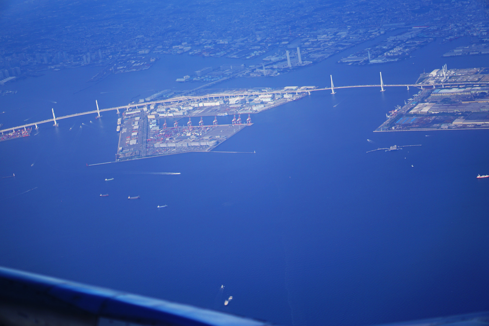 上空から見ると、ベイブリッジも鶴見大橋も巨大さがわかりますね。