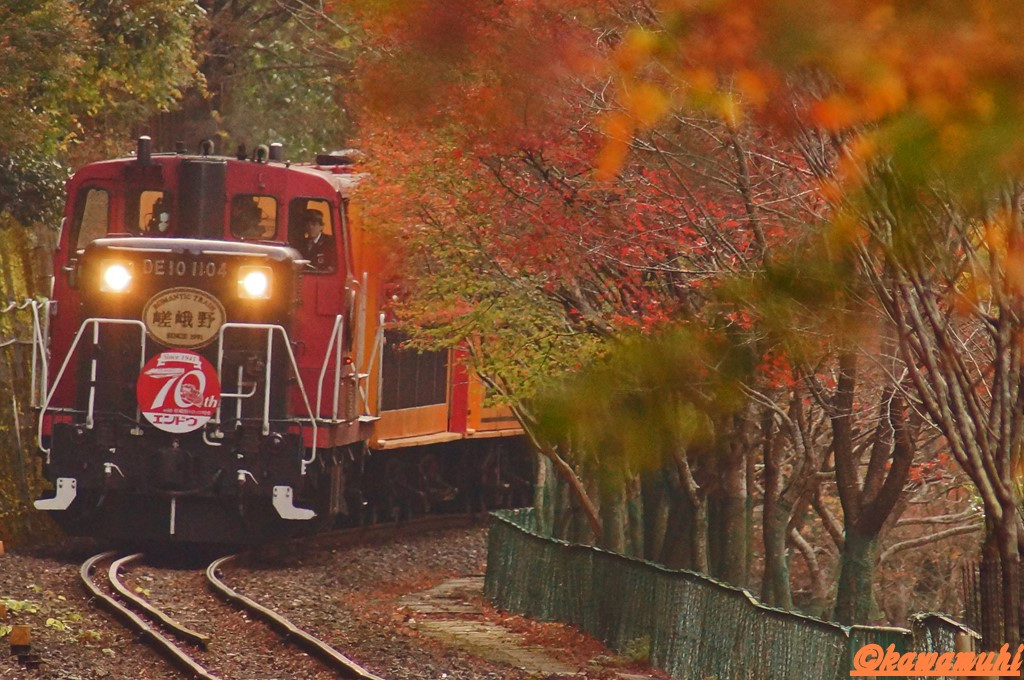 トロッコ保津峡駅からの撮影です。 見ごろな色合いが見つからず思いっきりロングレンジで撮影してみました!(^^♪