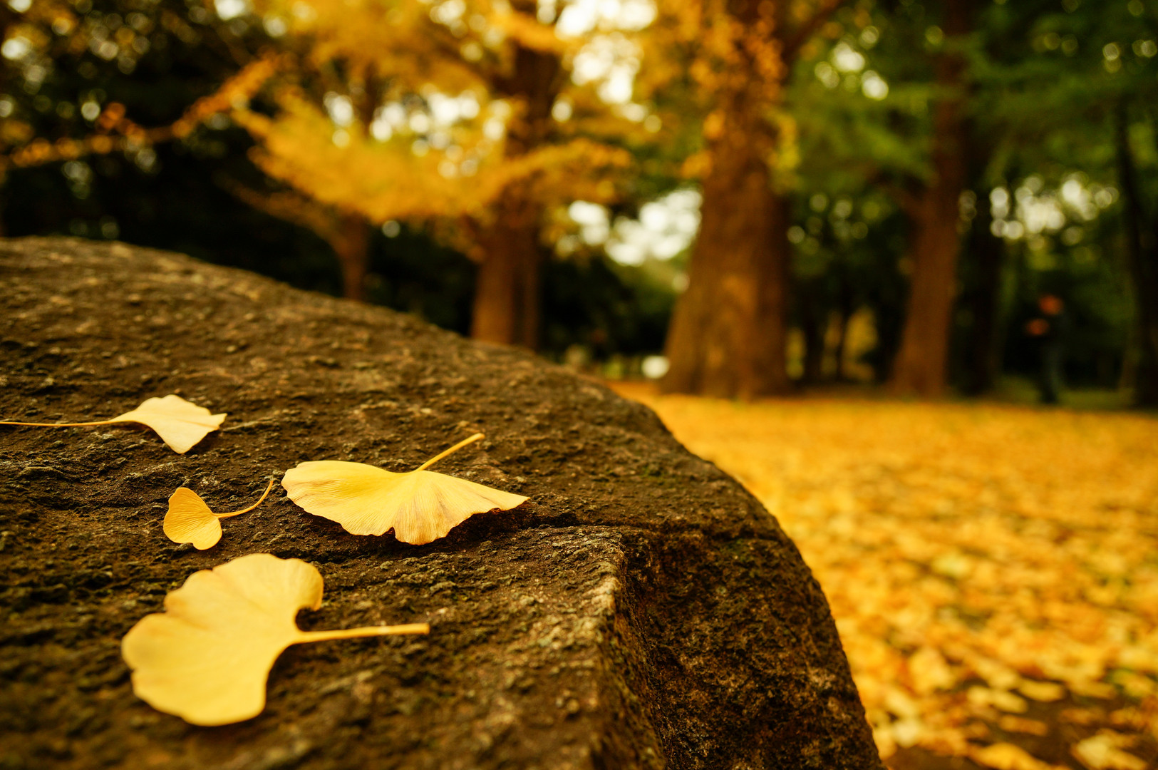 代々木公園のイチョウの木にて。見渡す限り黄色い地面が素敵!