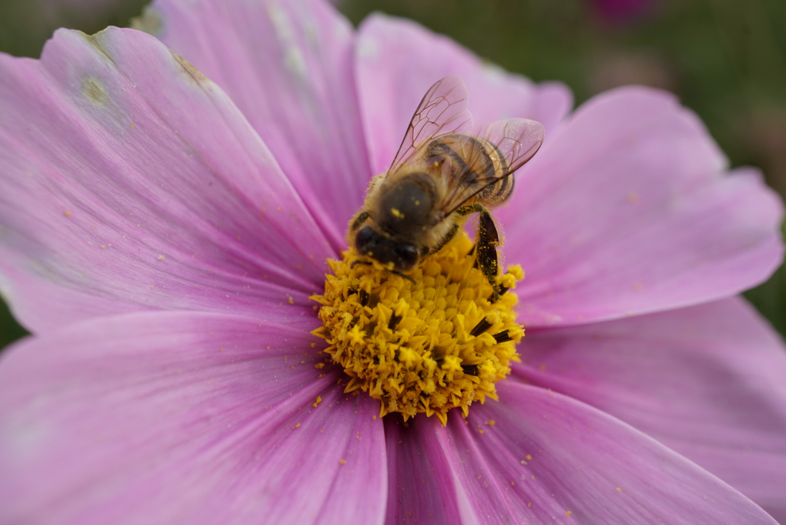 マクロレンズでミツバチ撮るのは難しいですね~ すぐ逃げられました…