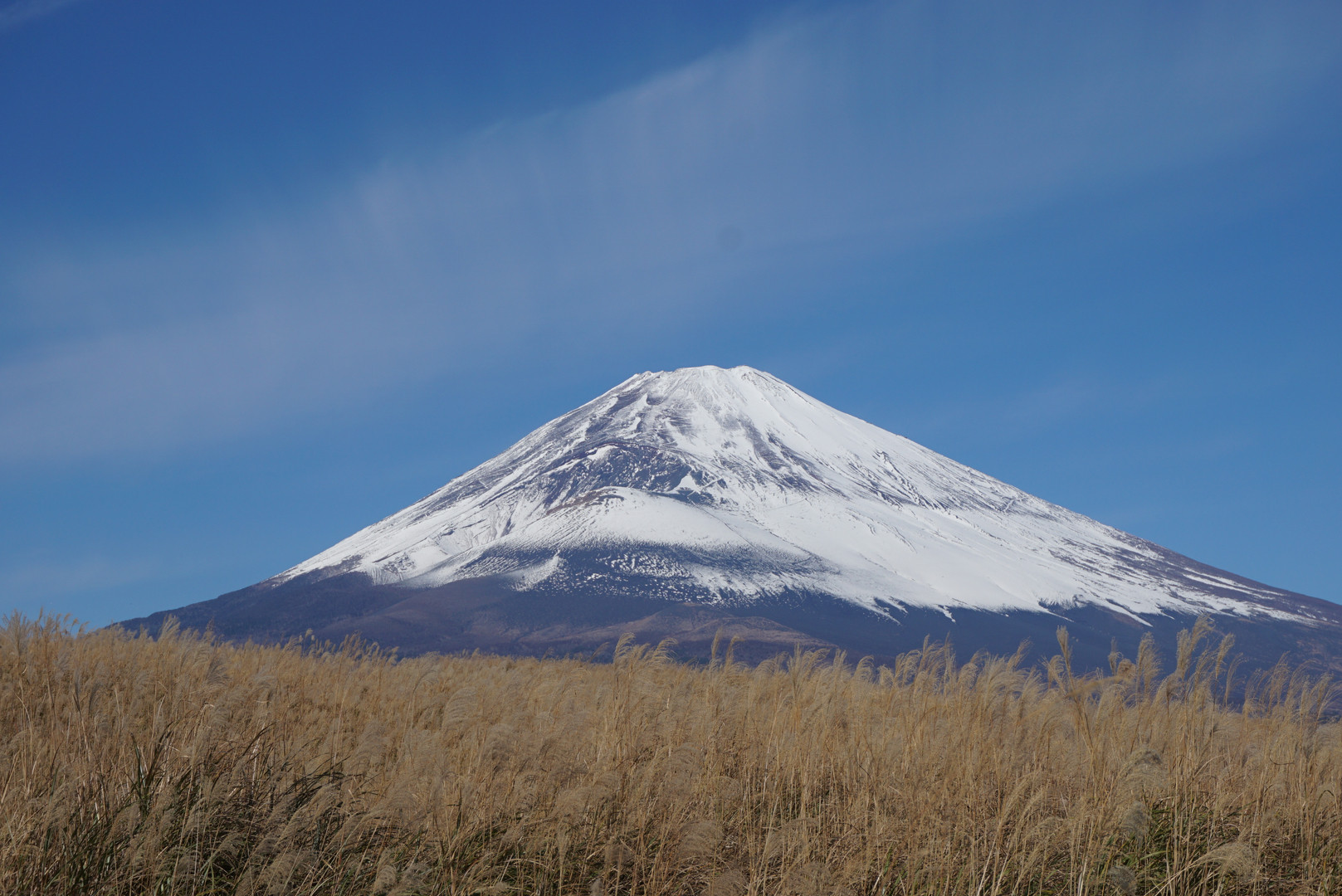 野原の向こうに、雄大な富士山が顔を出しました。