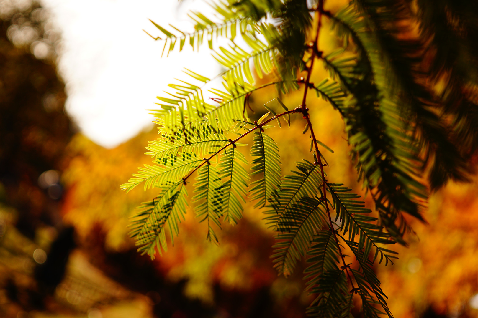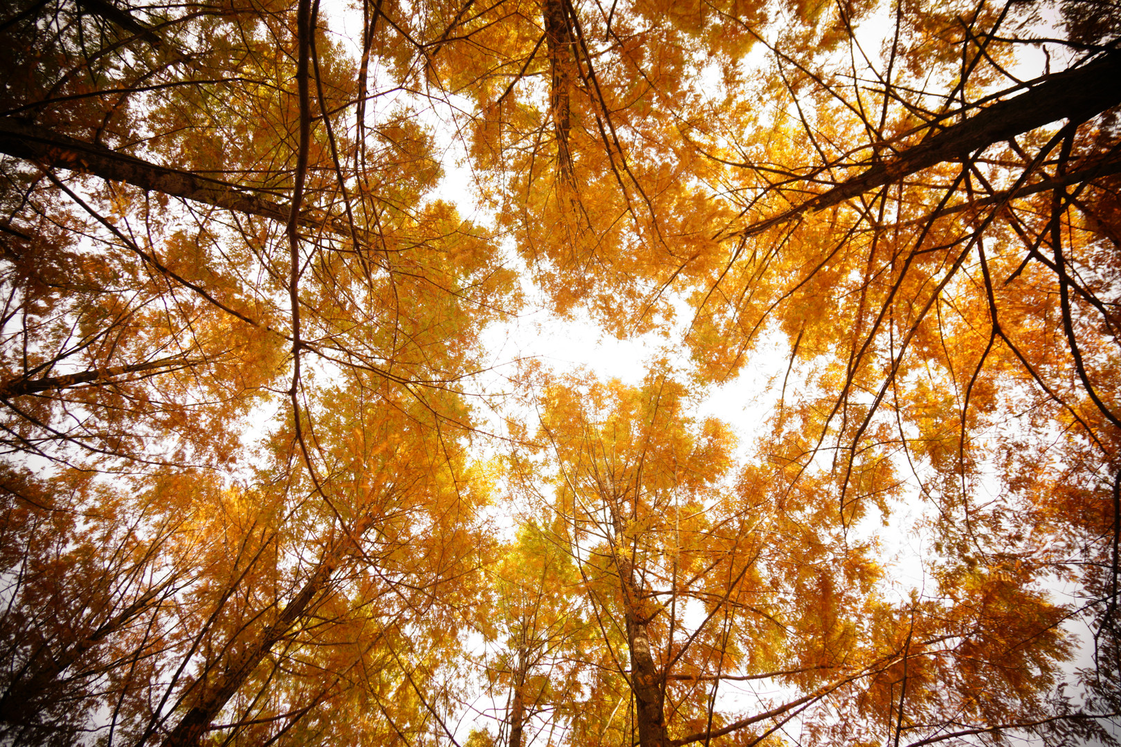 ムーミン谷?公園のメタセコイアの公園です。 以前αcafeでいただいたアドバイスを参考に見上げて紅葉を撮影してみました。