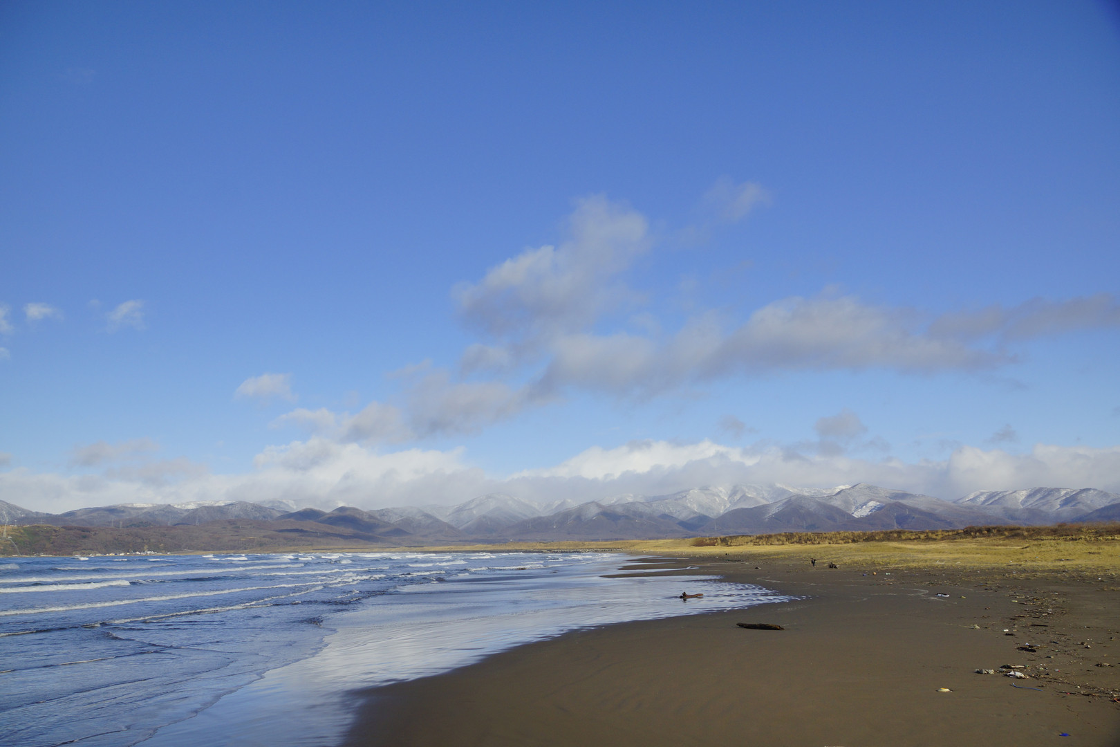配達の帰り道、立ち寄った岩内の海辺を。