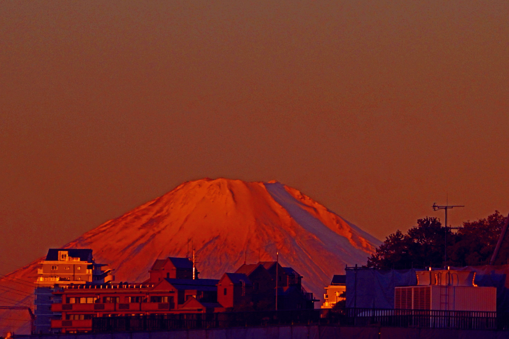 素晴らしい日の出でした。その光に誘発されて富士山も真っ赤に染まりました。