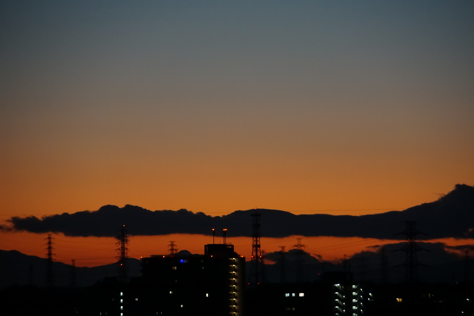 現物を見ていて騙されたのですが… 「遠くに連なる峰々」に見える黒いものは雲で、その「手前」の部分は空でした…