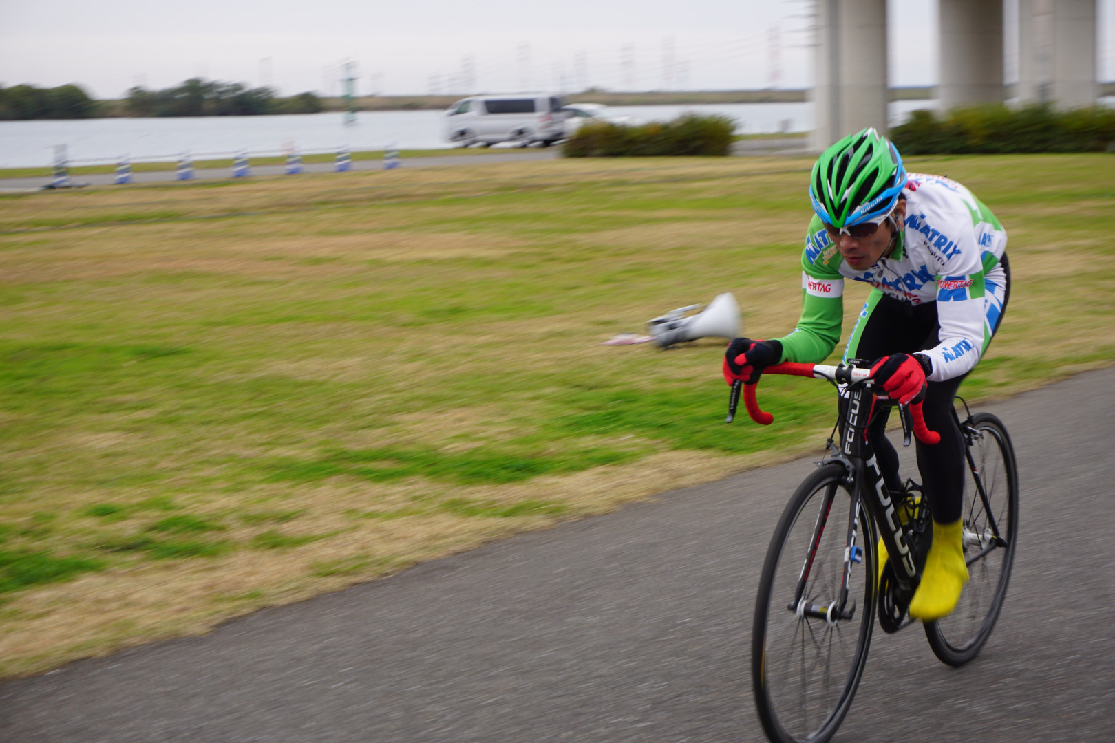 プロのロードバイク選手が先導する様を収めました。圧倒的な前進。