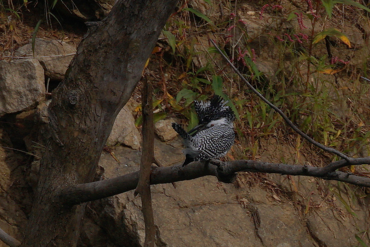 ヤマセミは神秘的な野鳥なのでついヤマセミ様と言ってしまいます。この写真は100M程度先の枝に止まったのを500㎜のMF専用レンズで撮影しました(興和のプロミナーです)。α77ⅡのMF時ピント拡大機能は最強です。iso100,ss250で撮りました。当然大トリミングですが画素数2400万の賜物でしょうか。