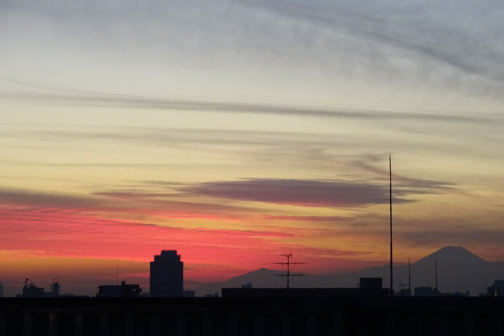 品川から見た夕暮れ時の富士山です。