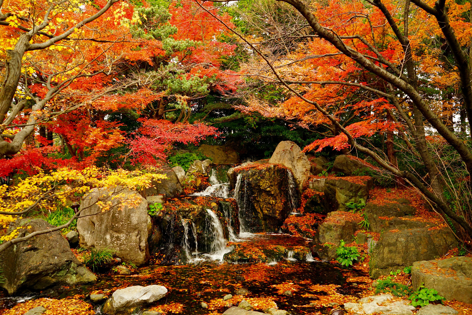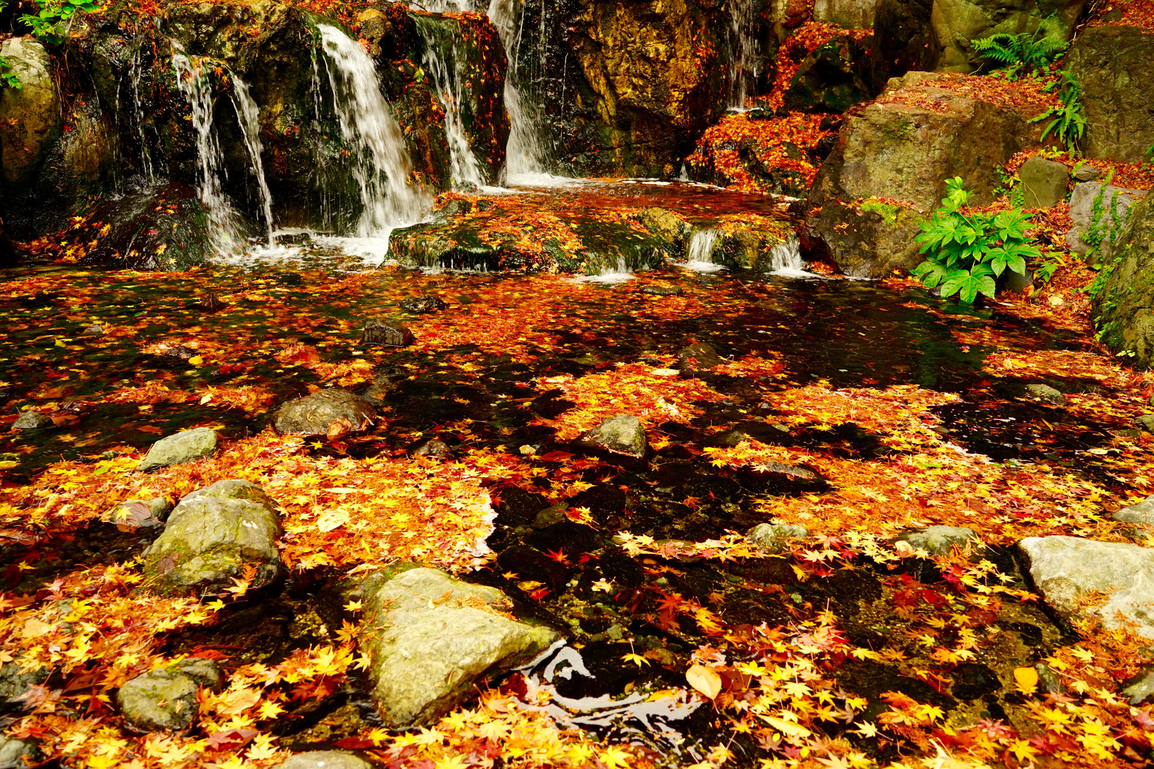 白鳥庭園の滝です。