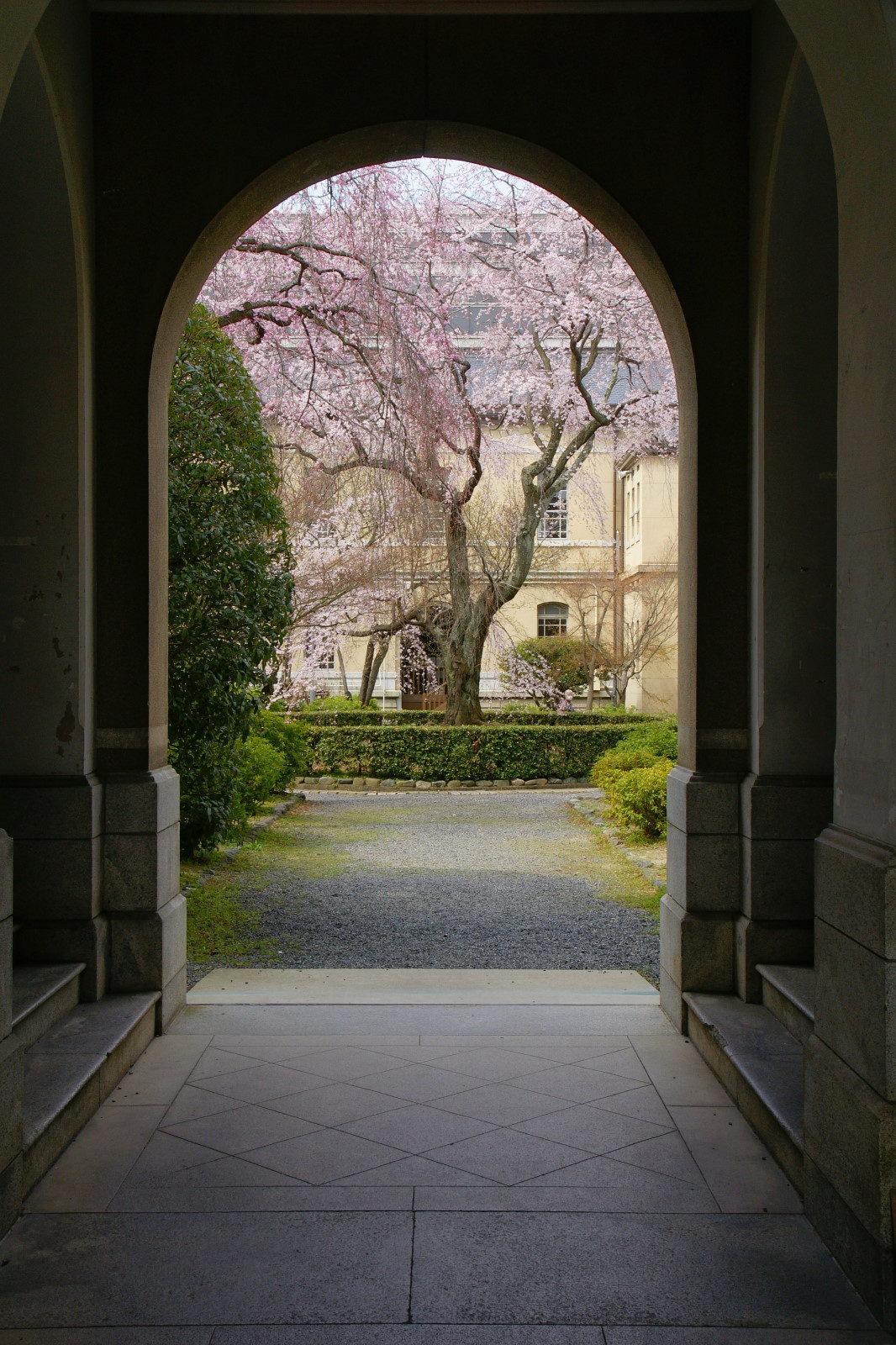 「観桜会」で一般公開されている日に撮影。 中央の枝垂れ桜は、円山公園の祇園枝垂れ桜の種から育てられた1本