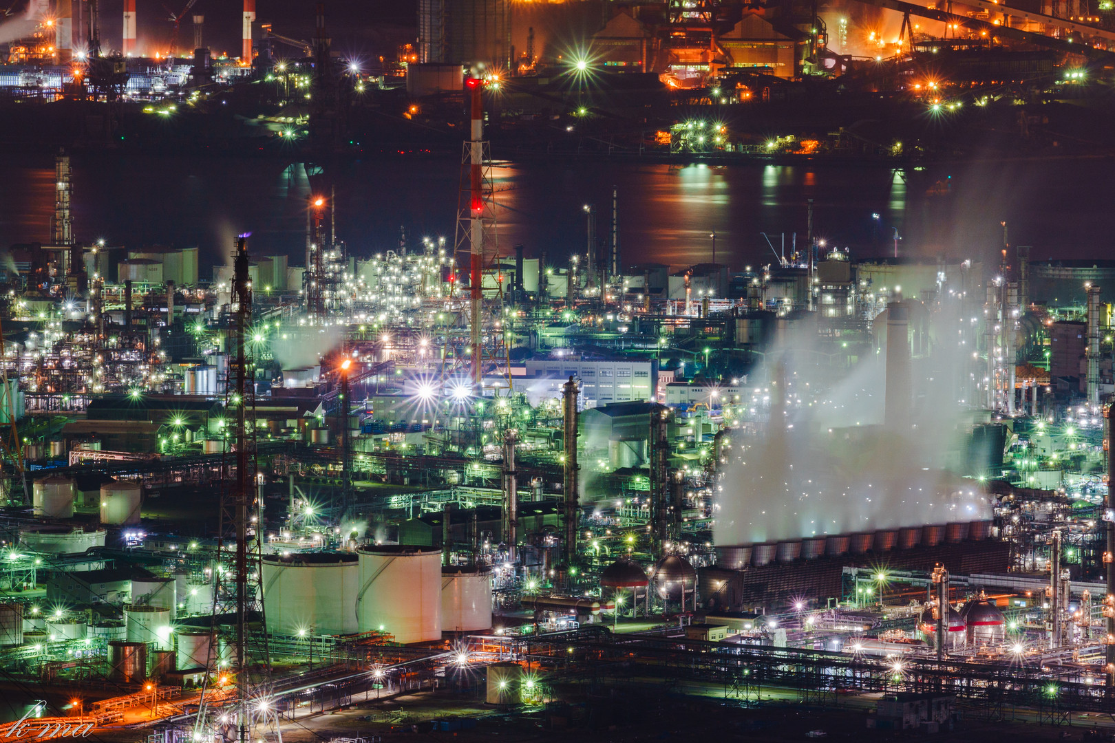 水島工業地域を再び尋ねました。 冬のおかげで、依然訪れた時よりもクリアに見えました。 鷲羽山スカイラインの展望台と、水島灘のサノヤスドックから撮影しています。