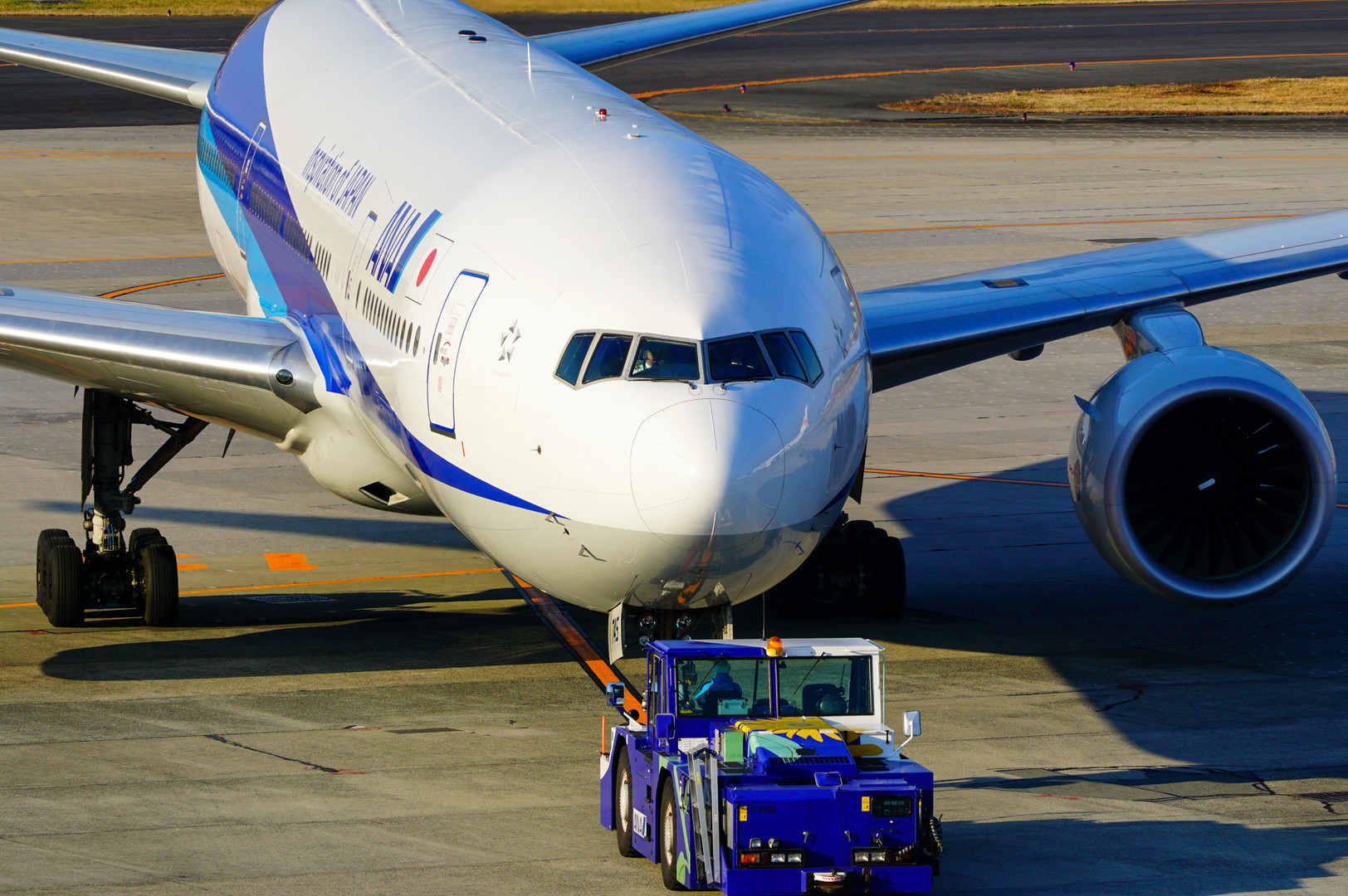 牽引車も白とブルーで統一 映えるブルーです。