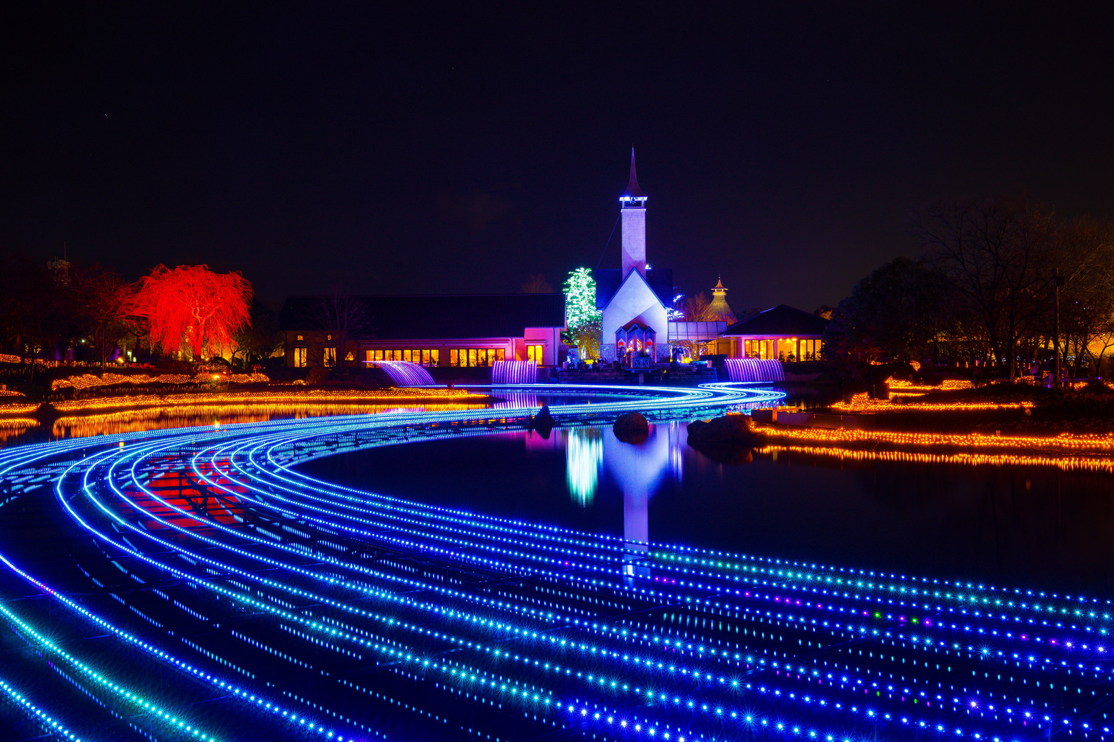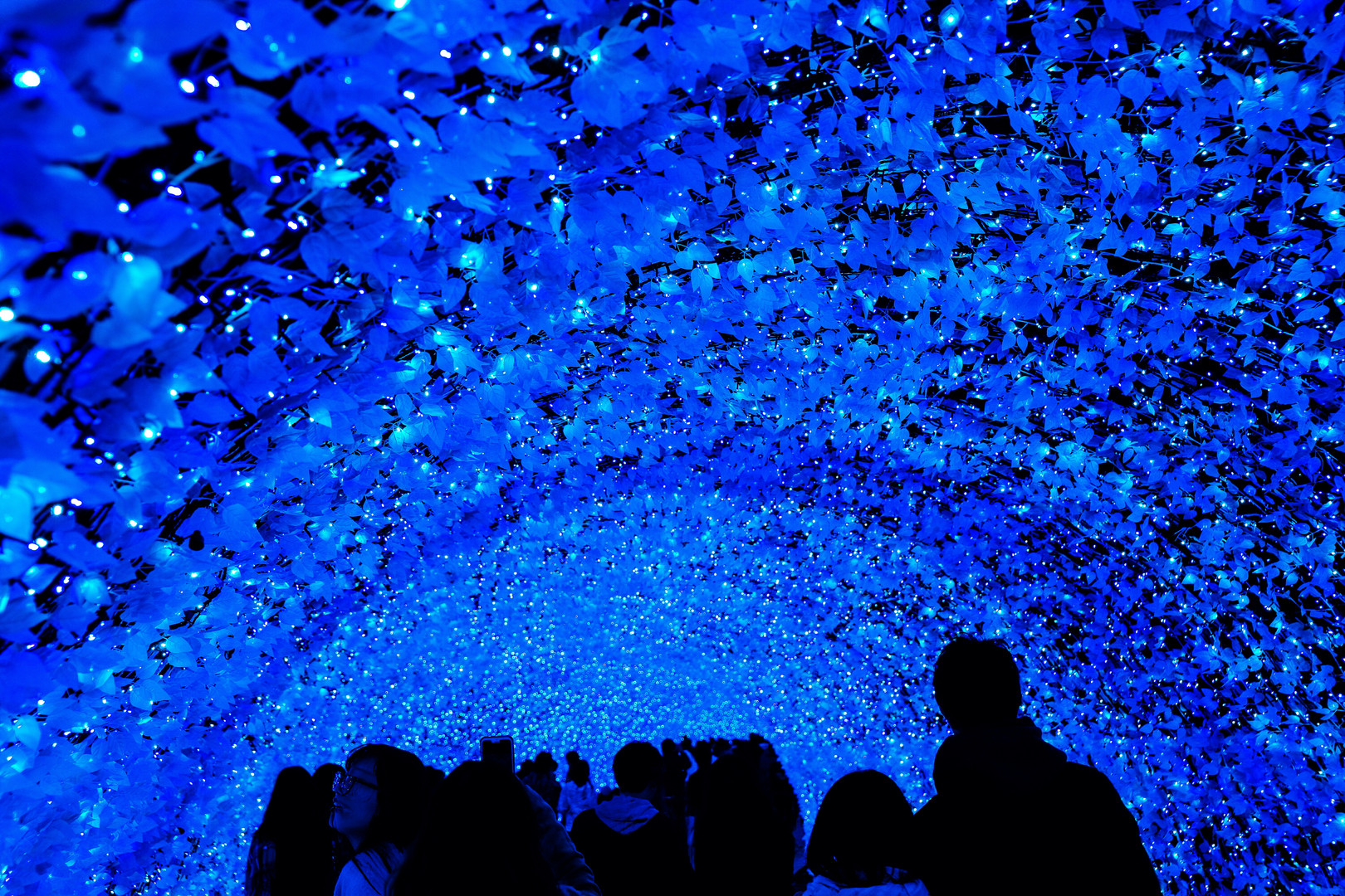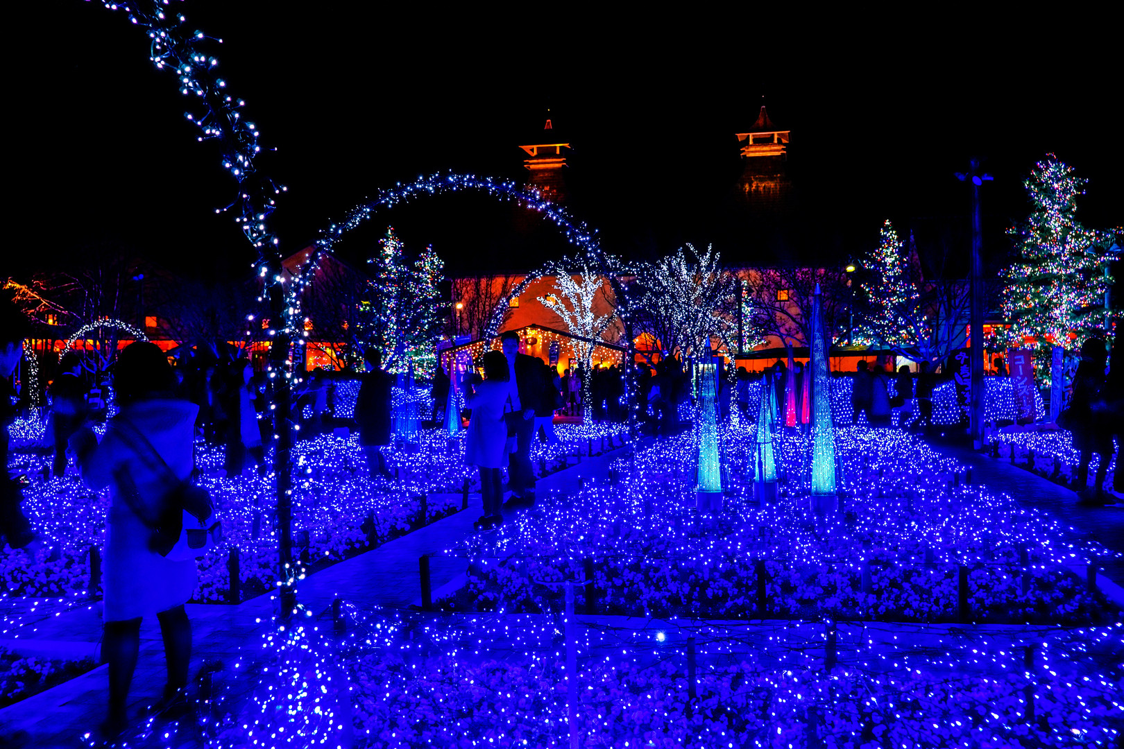 なばなの里の、「水上イルミネーション・・・光の大河」✫「光のトンネル・・・青の世界」✫「青い光の花壇・・・光の雲海」