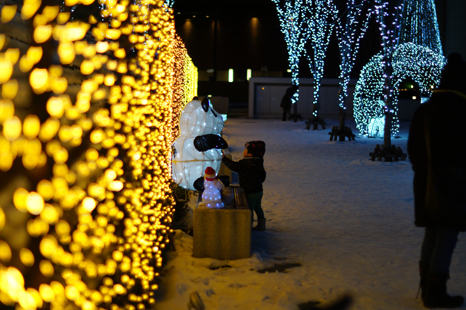 駅前のイルミネーションに立ち寄ってみたら、何よりもパンダに夢中で しばらく離れない息子でした。 光ってるパンダは不思議なんでしょう! 本物のパンダもまだ見たことないですし(笑)