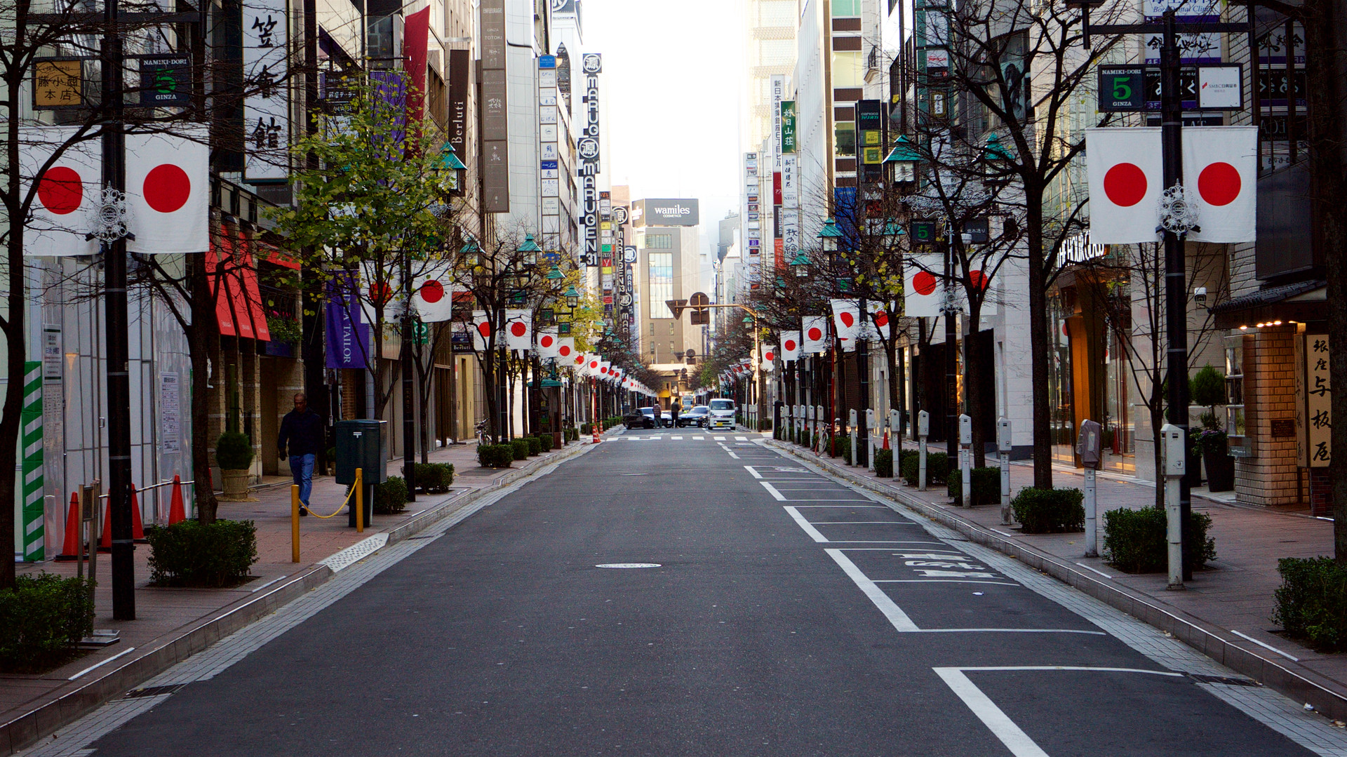 元旦の早朝なら人通りが少なく、いつもと違った都心の風景を撮れるのではないかと思い、出かけてみました。 こちらは銀座、並木通りです。