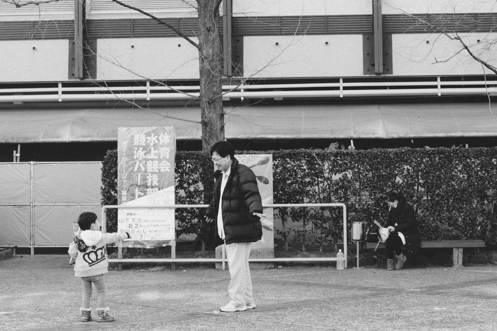 大学を歩いていると、親子連れのかたがいらっしゃいました。笑顔で遊ぶお父さんと奥でタバコを吸う女性がなんだかコントラストだな−と思いました。 レンズはExifにはありませんがcosina planar 50mm f1.4 zfで絞りは忘れてしまいました・・・多分F8ぐらいかと思いますが。