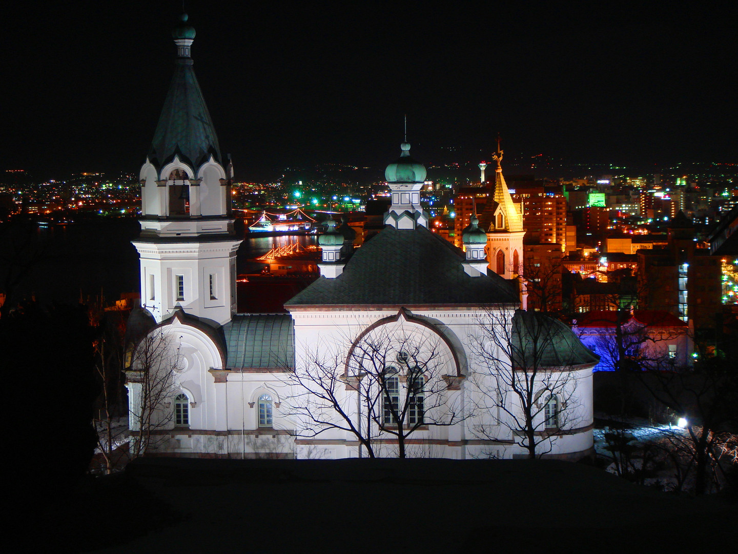 函館の夜の教会です。