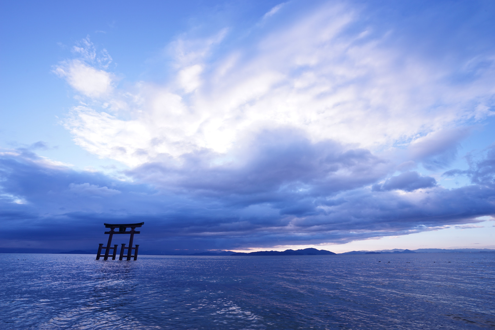 琵琶湖の湖畔に浮かぶ鳥居です。湖畔に昇る朝日を撮影しに出掛けましたが、残念ながら出会えませんでした。次回再チャレンジしたいと思います。
