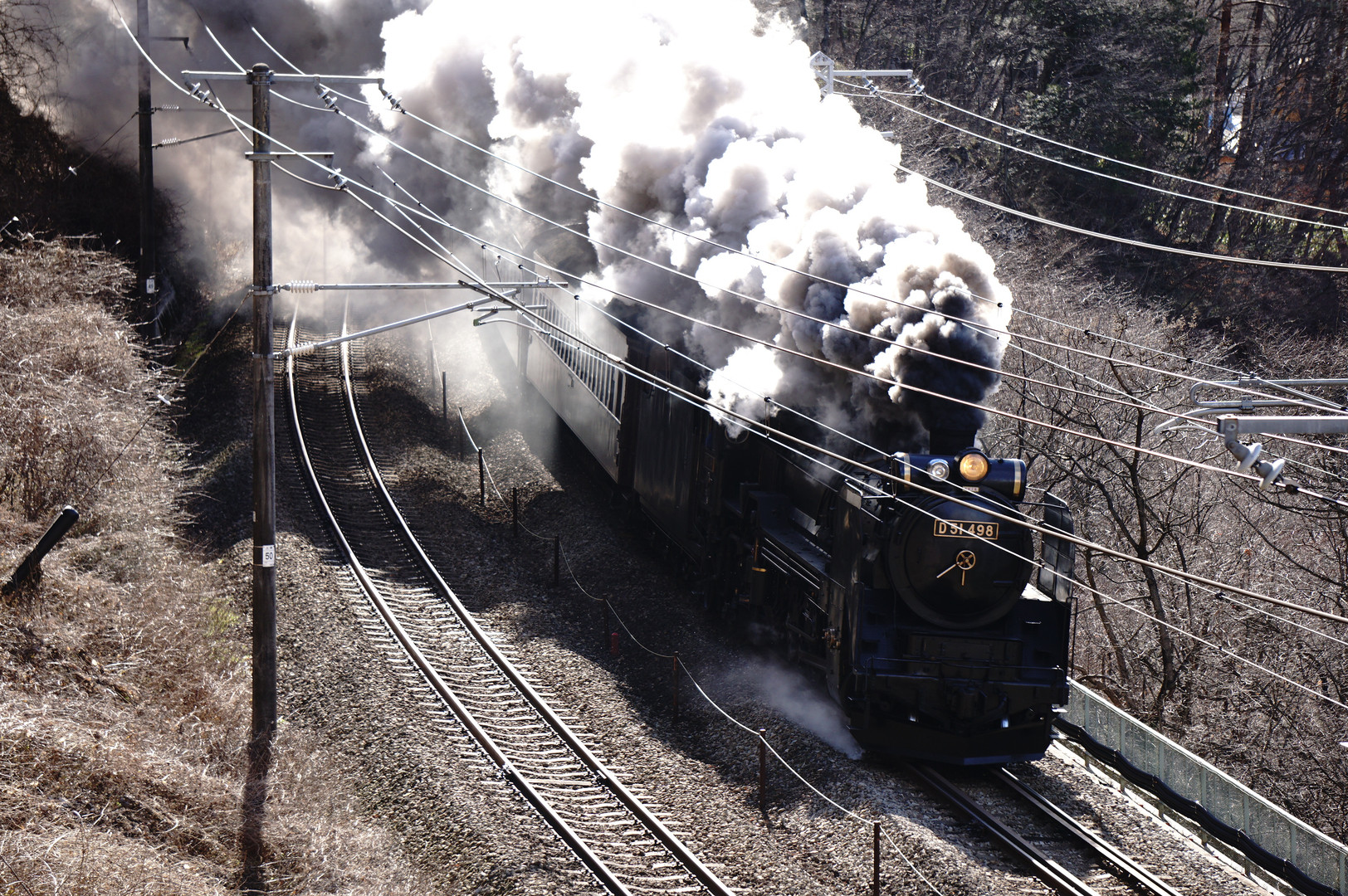 SL新春レトロみなかみ号を撮影しに行きました。今年は暖冬で水上駅手前でも全く積雪なし。おまけに架線が被っていい作品ではないですが煙が凄かったのでアップします。